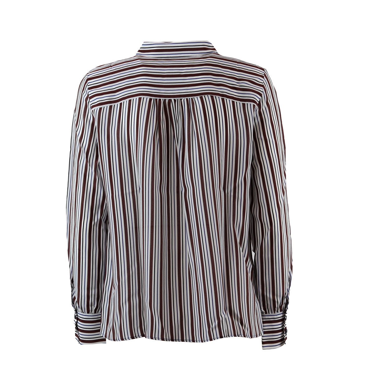 Camicia VULCANO bordeaux di IBLUES in seta stampata con righe celesti, colletto, maniche lunghe, spacchetti laterali e arricciatura sul retro. Fit regolare.
