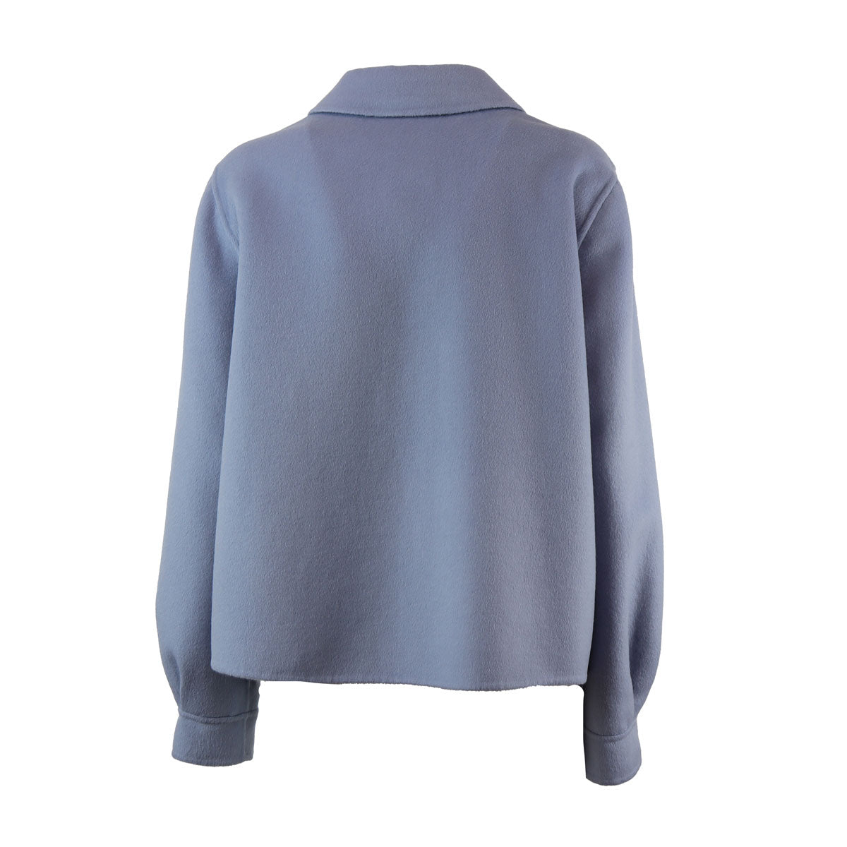 Bomber RISORSA azzurro di IBLUES in misto lana con collo camicia, chiusura con bottoni, tasche applicate. Fit regolare.
