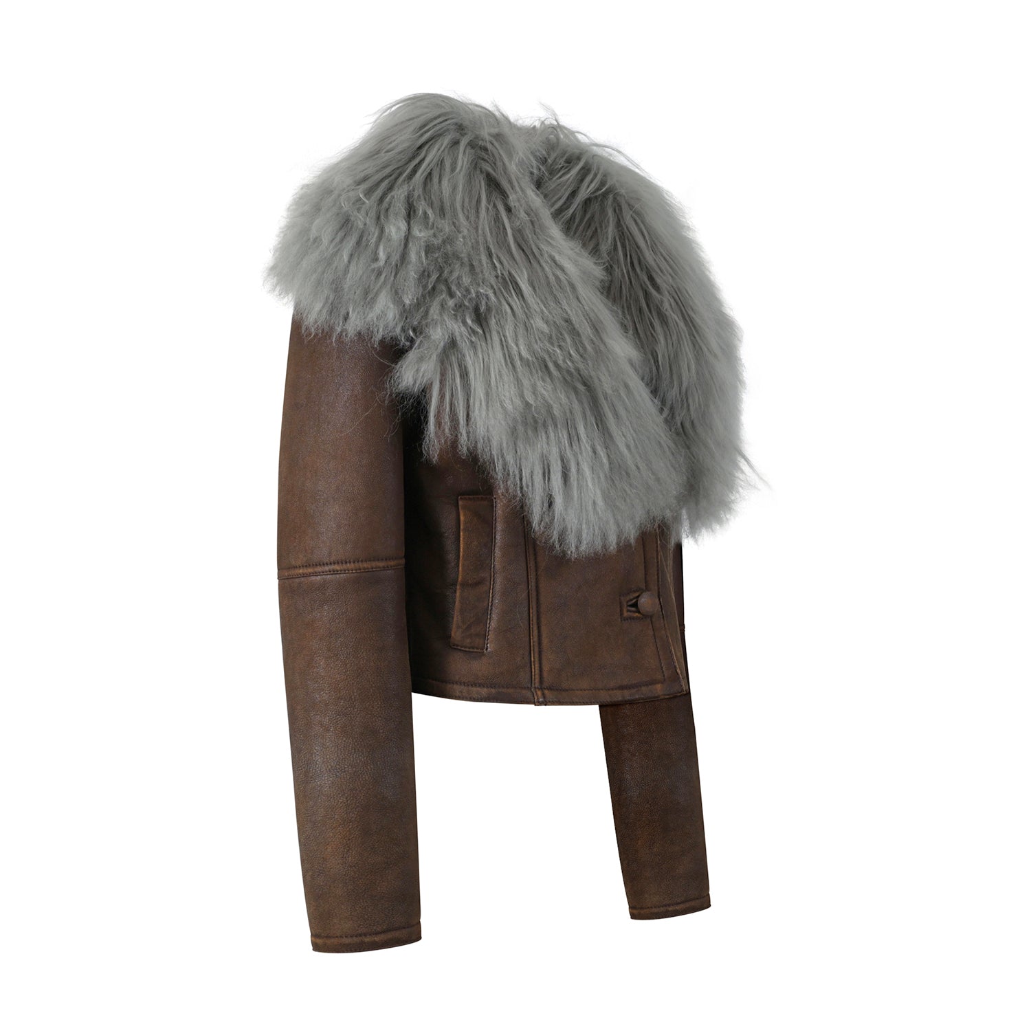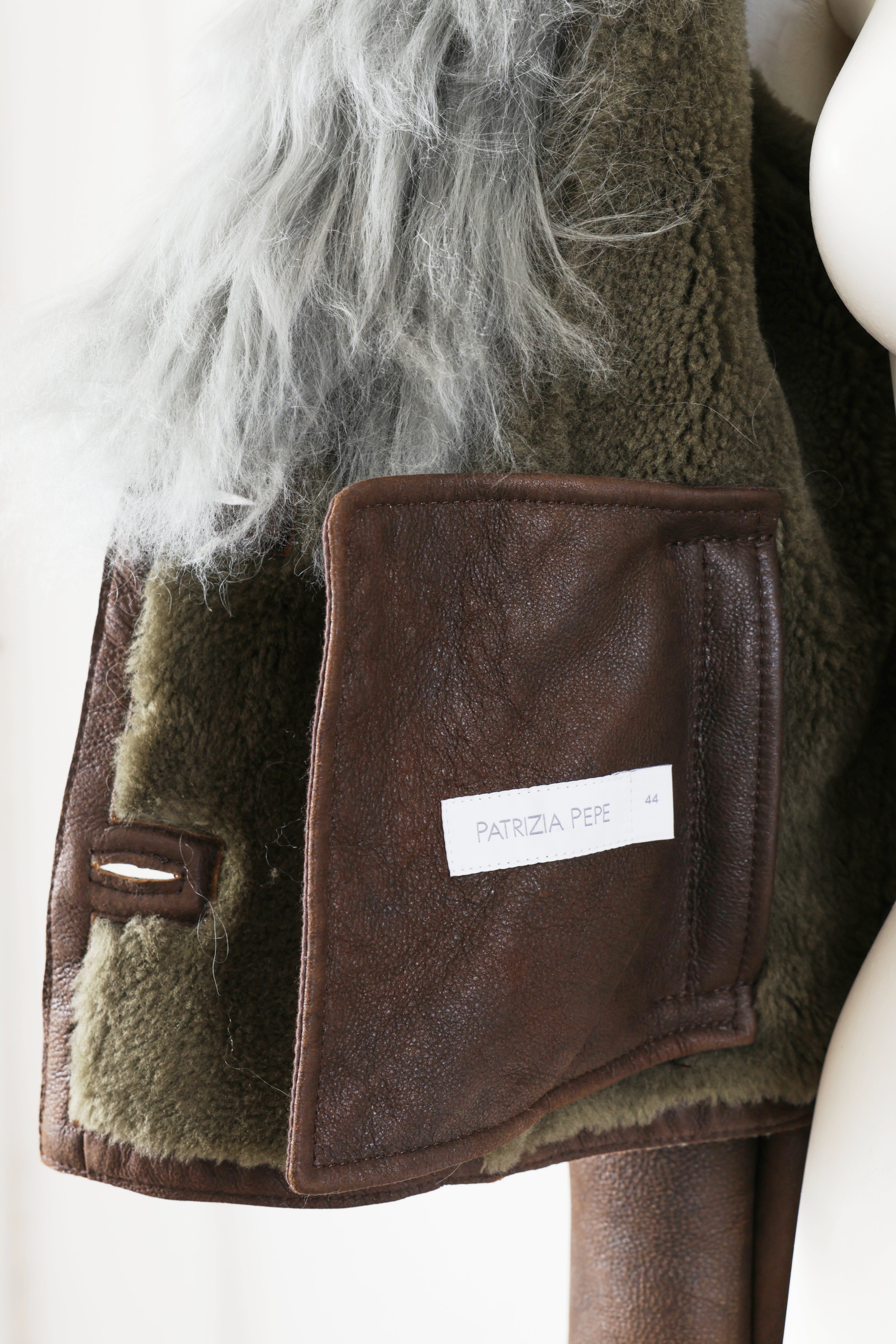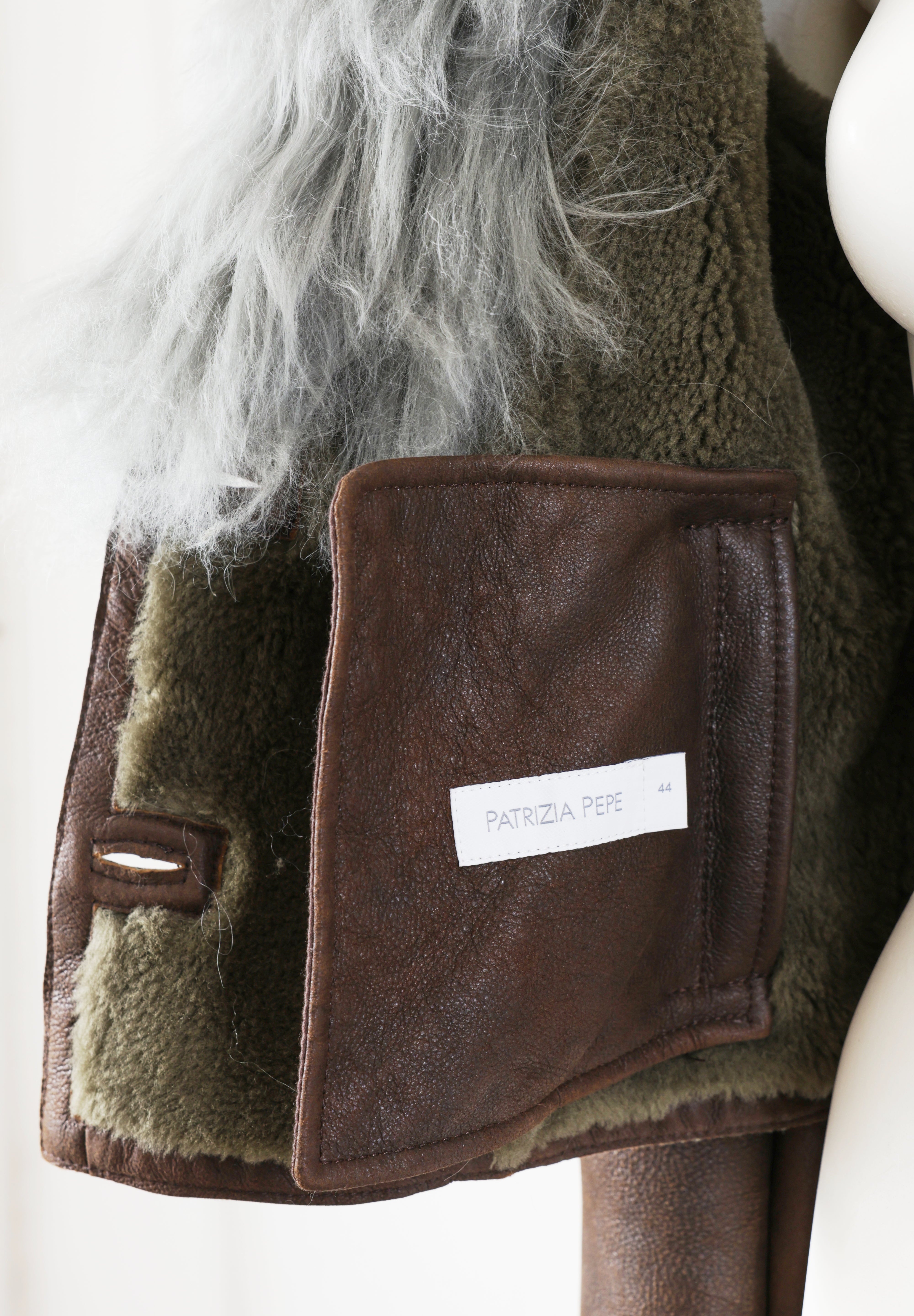 Montone marrone di PATRIZIA PEPE in nappa con collo pelliccia, vestibilità slim, bottoni rivestiti.