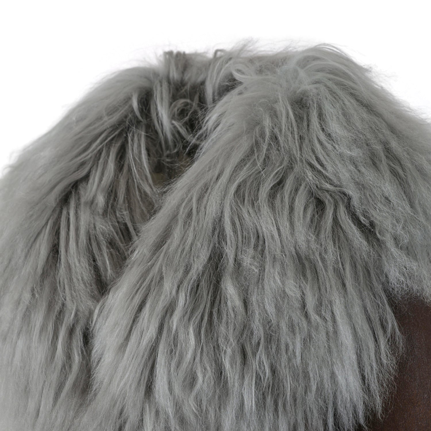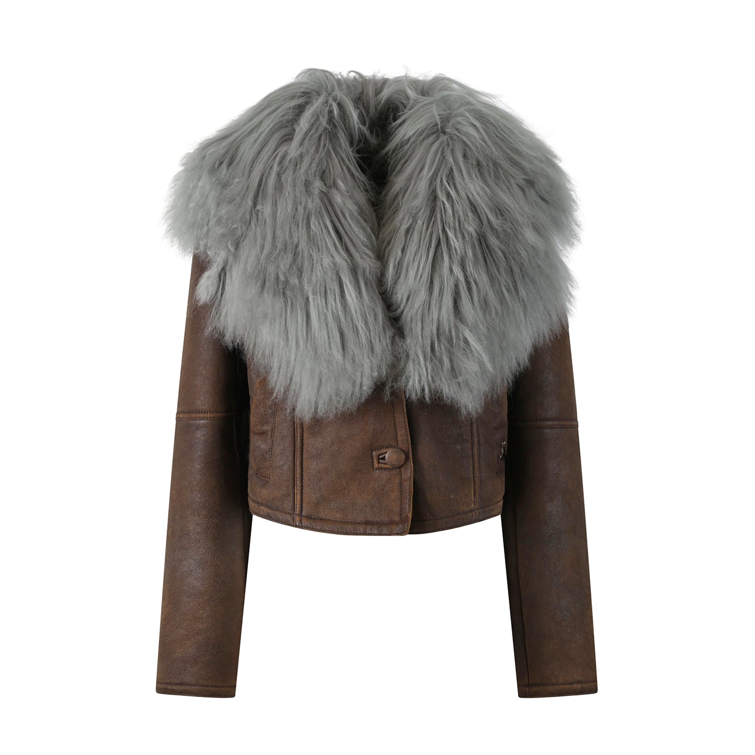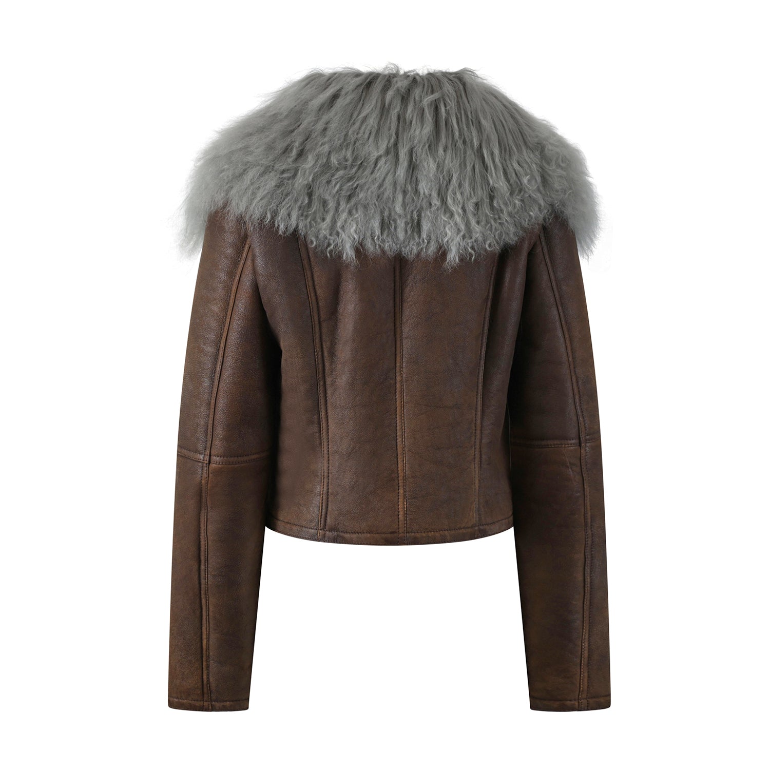 Montone marrone di PATRIZIA PEPE in nappa con collo pelliccia, vestibilità slim, bottoni rivestiti.