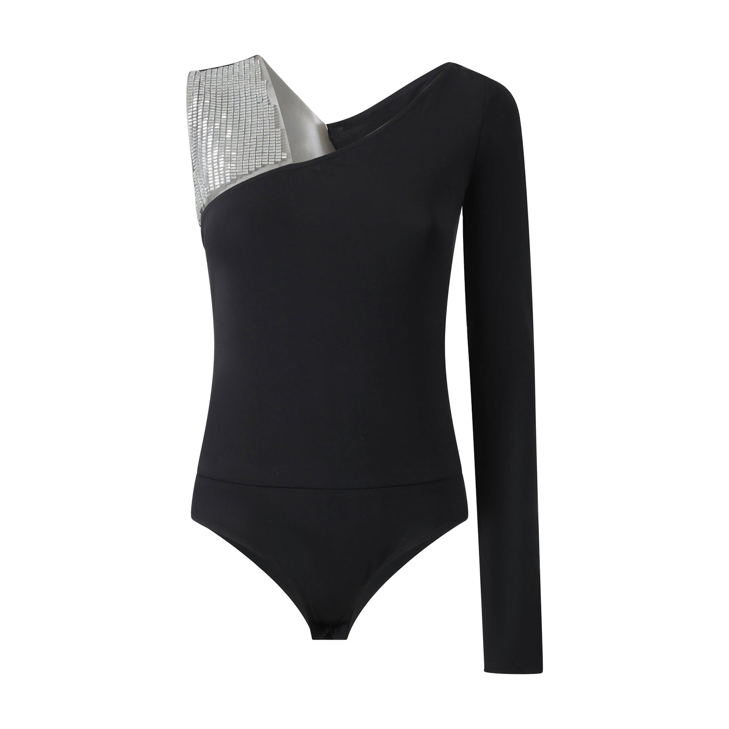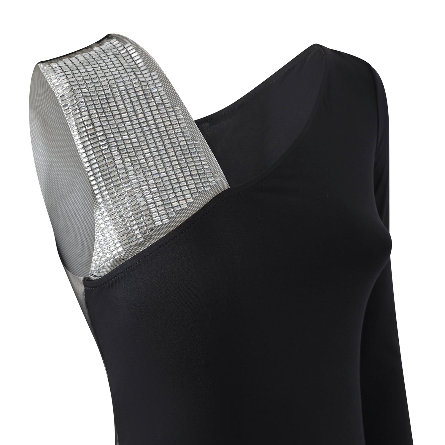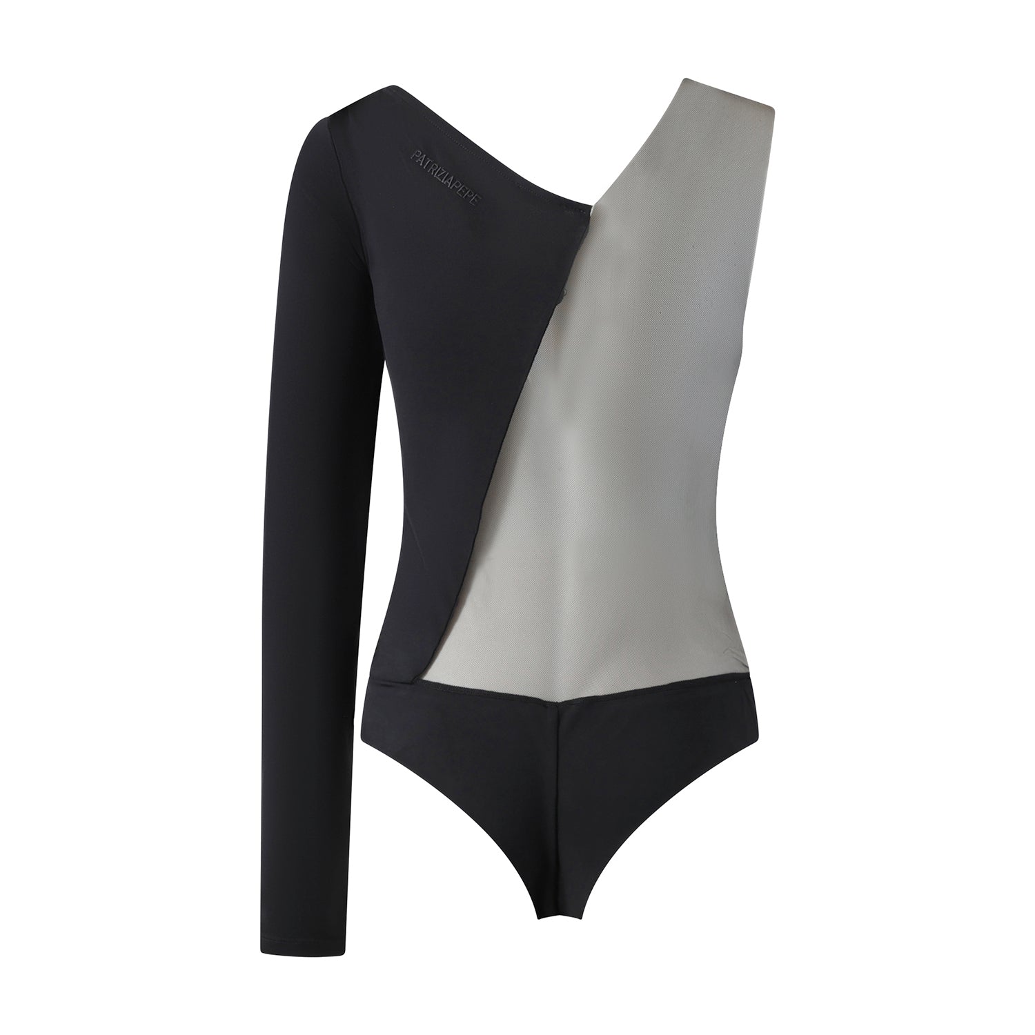 Maglia body nera di PATRIZIA PEPE in tulle con manica singola, spalla con strass, fit aderente.