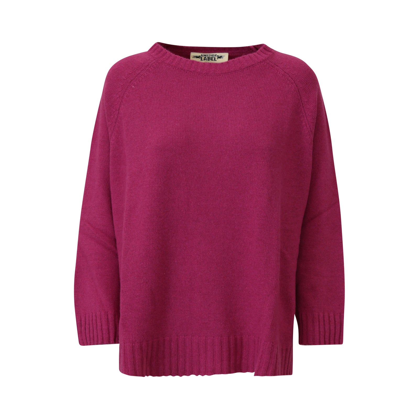 Maglia fuxia di ANOTHER LABEL in misto lana con scollo tondo ampio, bordi a coste, lunghezza midi svasata.