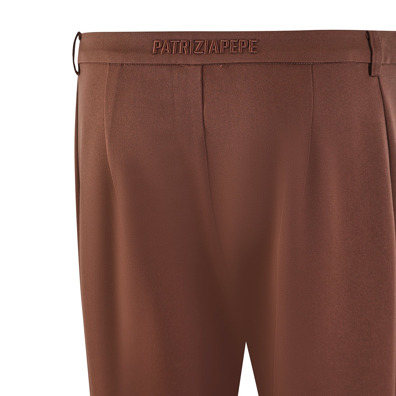 Pantalone marrone di PATRIZIA PEPE in cotone con vestibilità slim, vita regolare, logo posteriore.