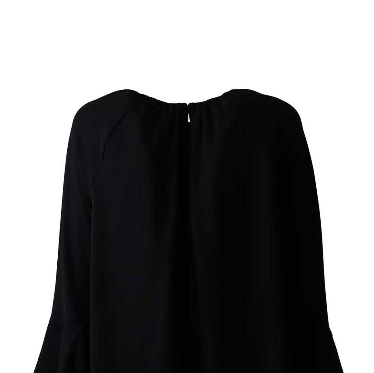Blusa MARIN nera di IBLUES in poliestere con maniche lunghe, rouches su maniche, collo a giro ampio, e chiusura con bottone posteriore. Fit ampio.