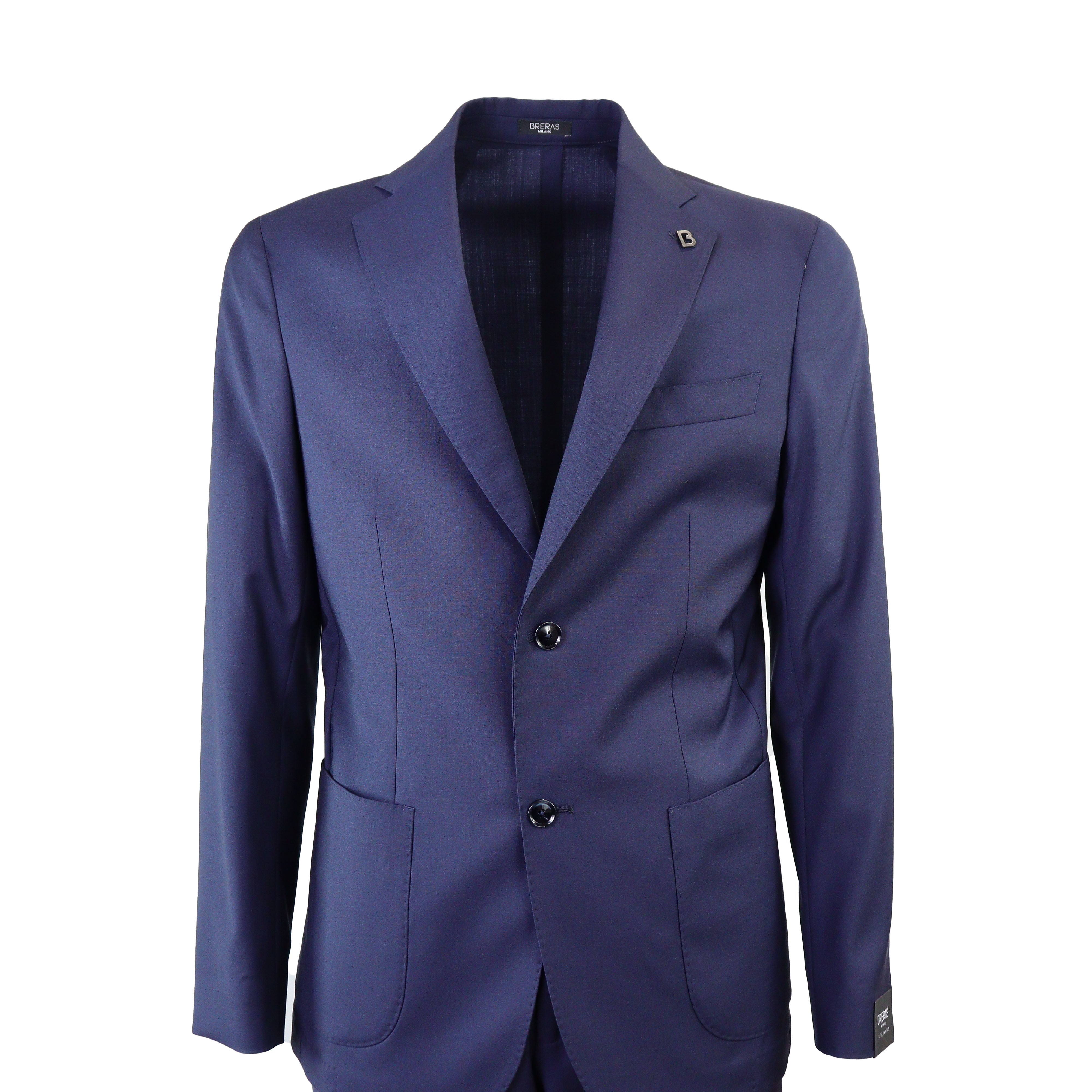 Abito blu di BRERAS in frescolana con giacca con tasche a toppe e rever classico, pantalone con tasche a filo.