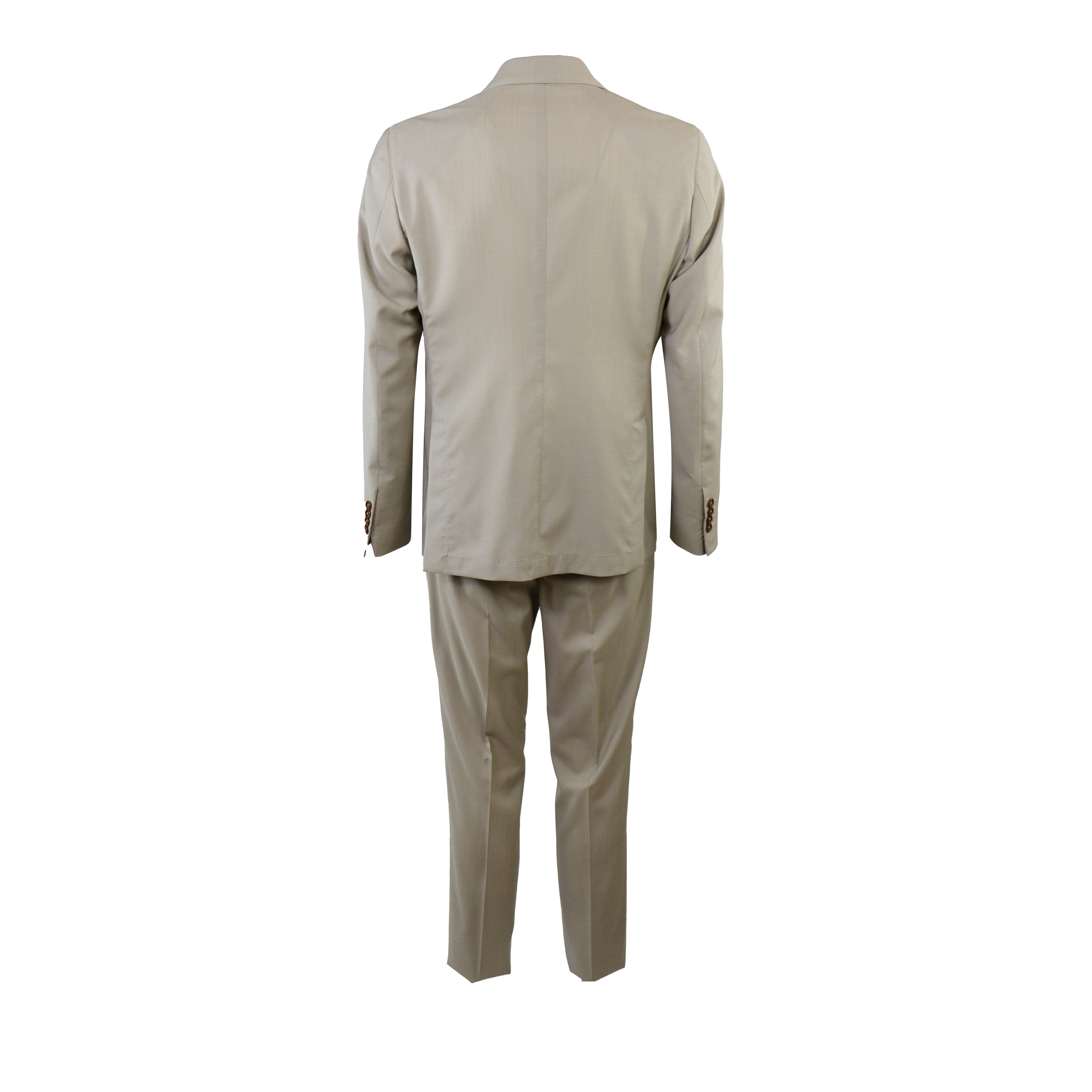 Abito doppio petto beige di BRERAS in frescolana con giacca con tasche a toppe e rever a lancia, pantalone con tasche a filo.
