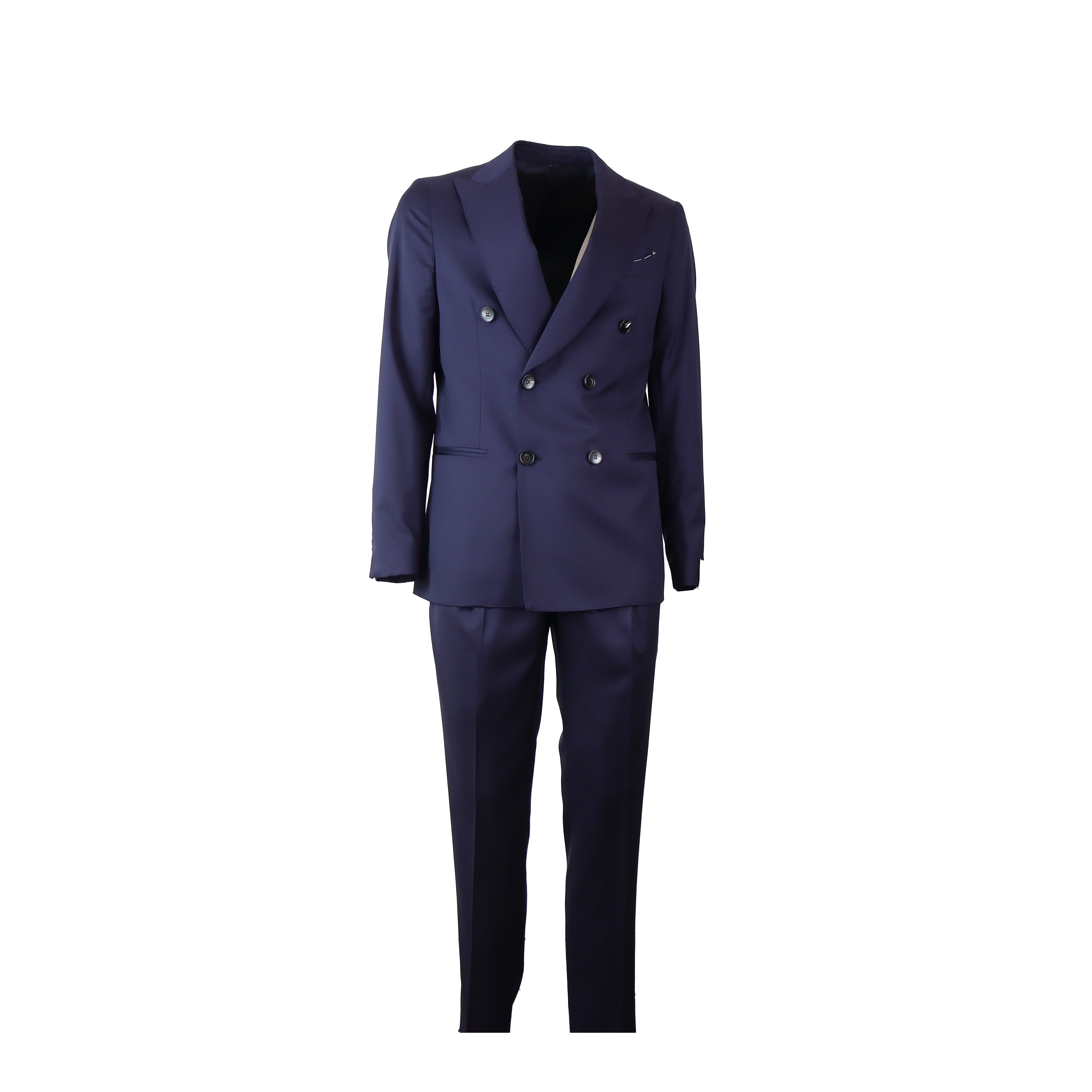 Abito PETRARCA blu di GALA' X FEDELE in 100% lana vergine estiva VITALE BARBERIS CANONICO. Giacca doppio petto foderata con ever a lancia, tasche a filetto e due spacchi posteriori. Pantalone con due pence, tiranti laterali e con chiusura con bottoni e zip.
