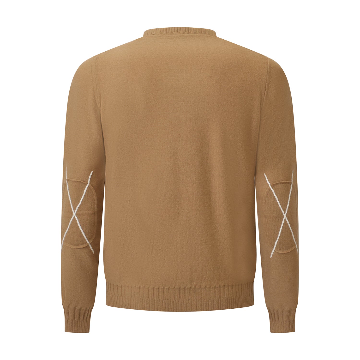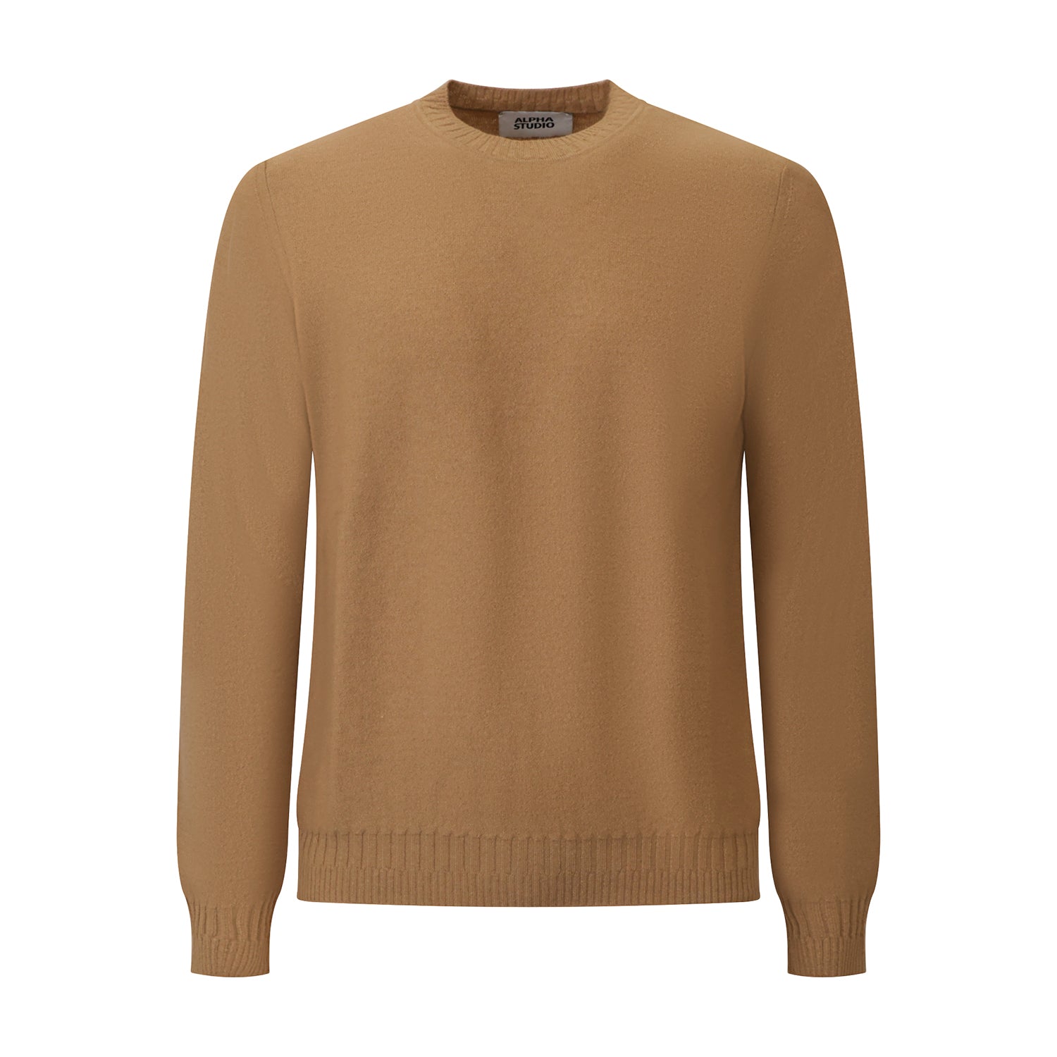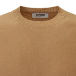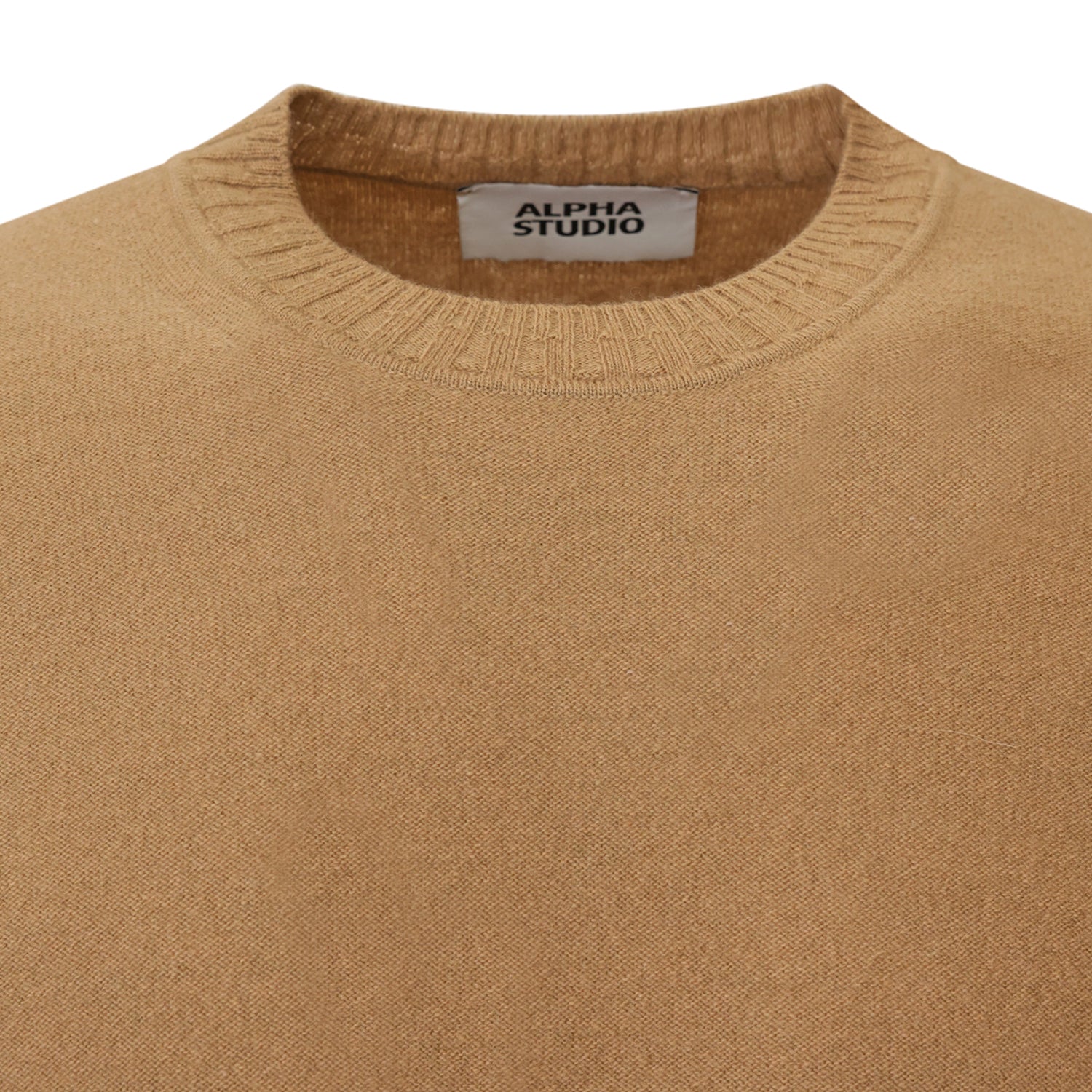 Maglia beige di ALPHA STUDIO in lana con girocollo e bordi a coste, toppe applicate.