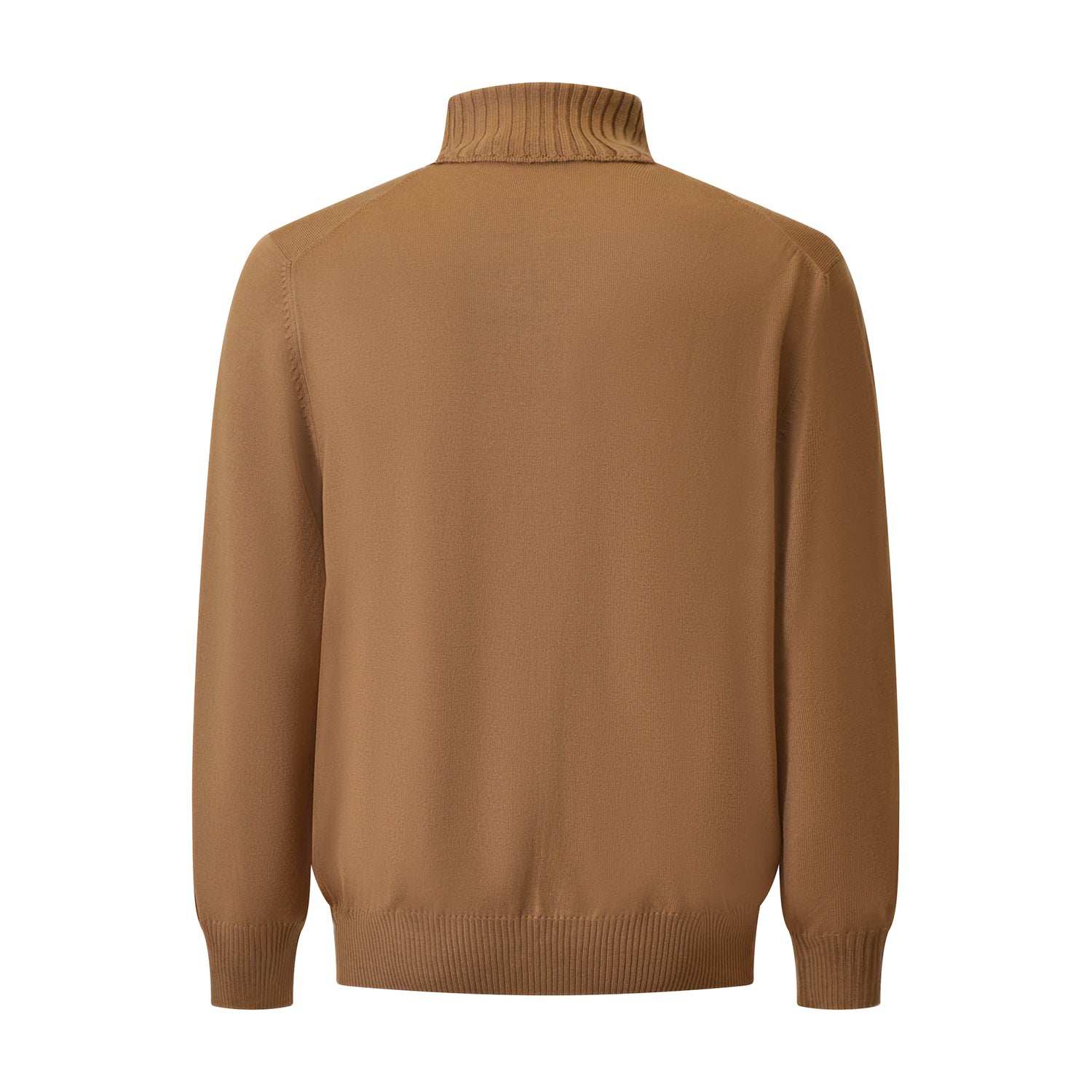 Maglia caramello di GRAN SASSO X FEDELE in lana con collo ciclista a coste, bordi e polsini a costine.