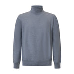 Maglia celeste di GRAN SASSO X FEDELE in lana merinos con collo ciclista, bordi e polsi a costine.