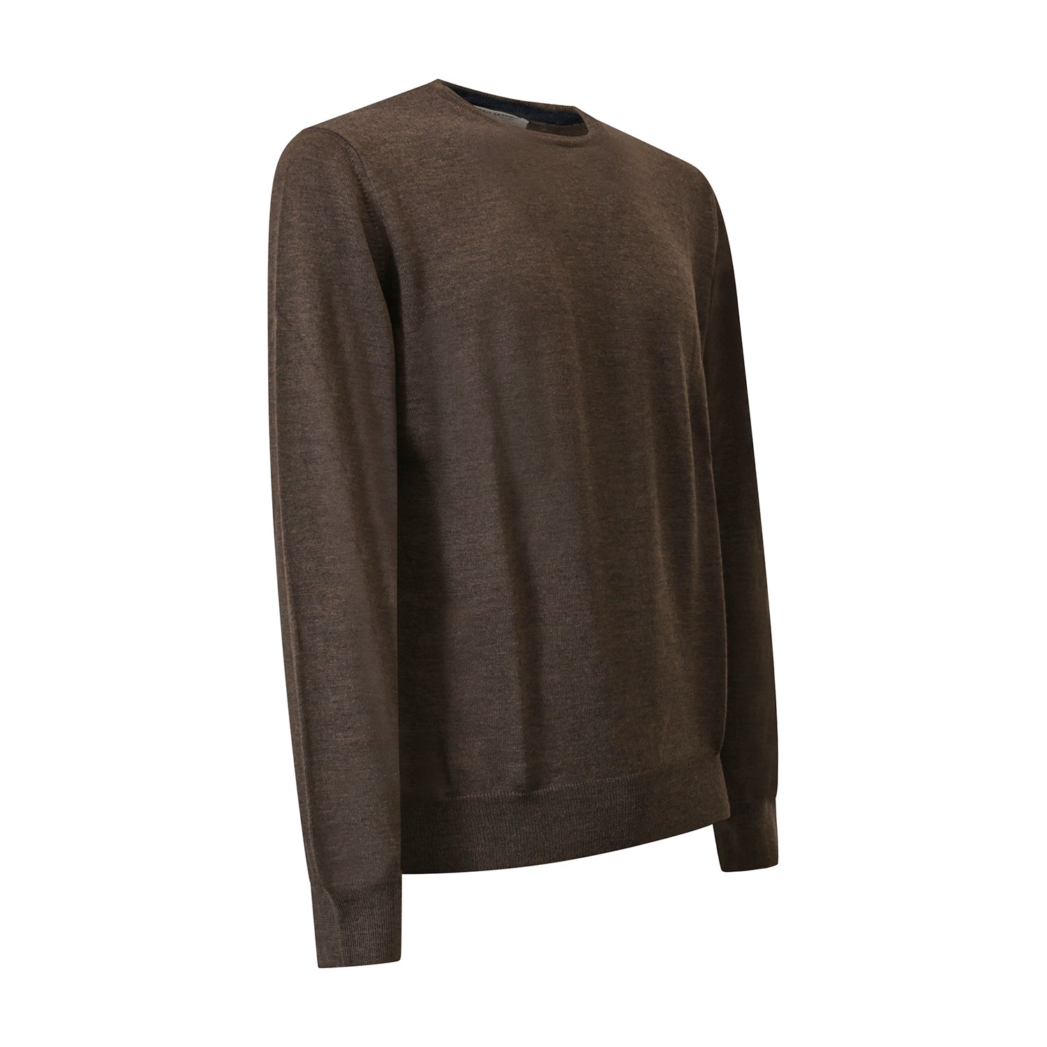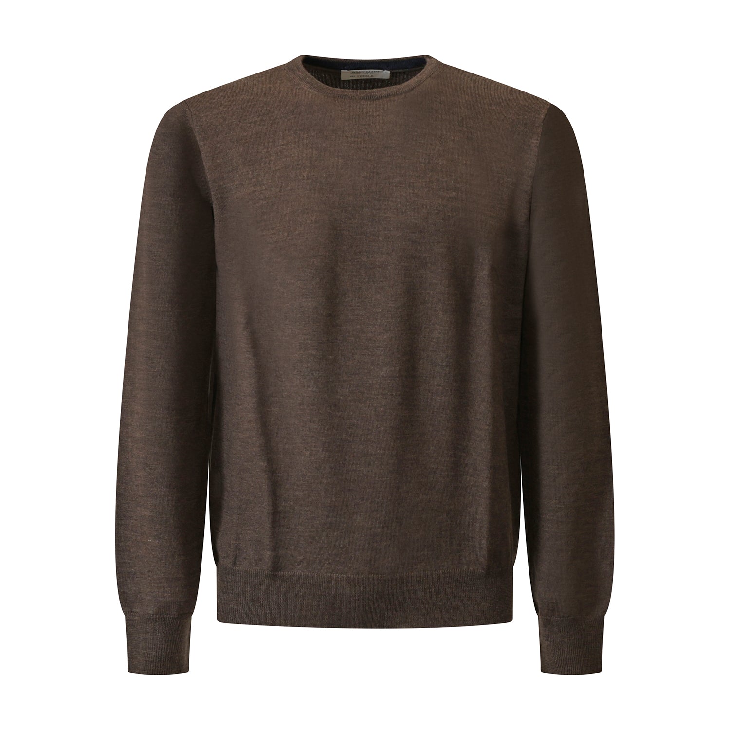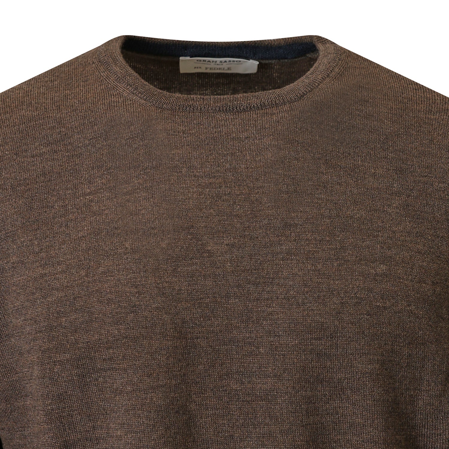 Paricollo marrone di GRAN SASSO X FEDELE in lana merinos con bordi e polsi a costine.
