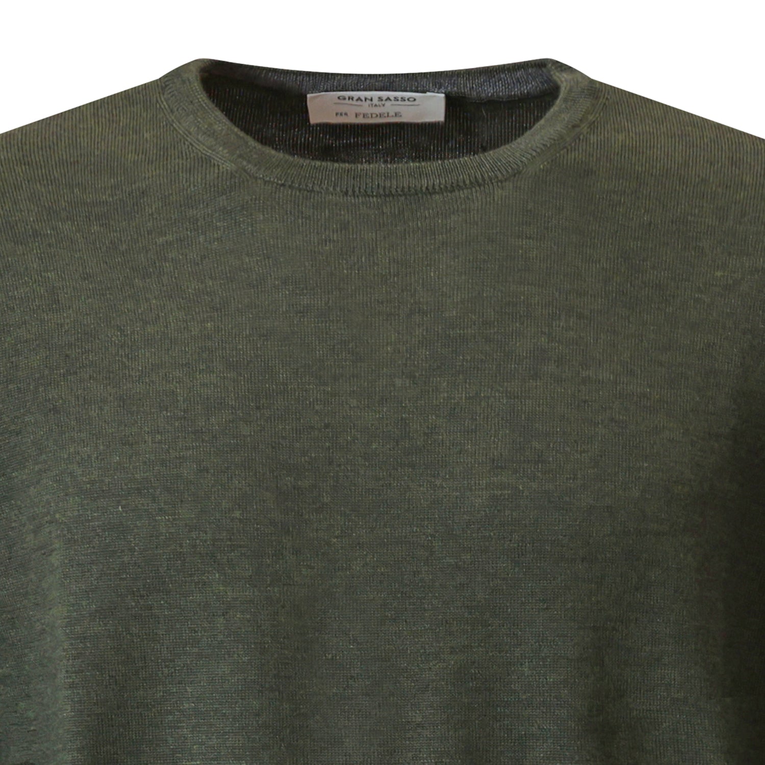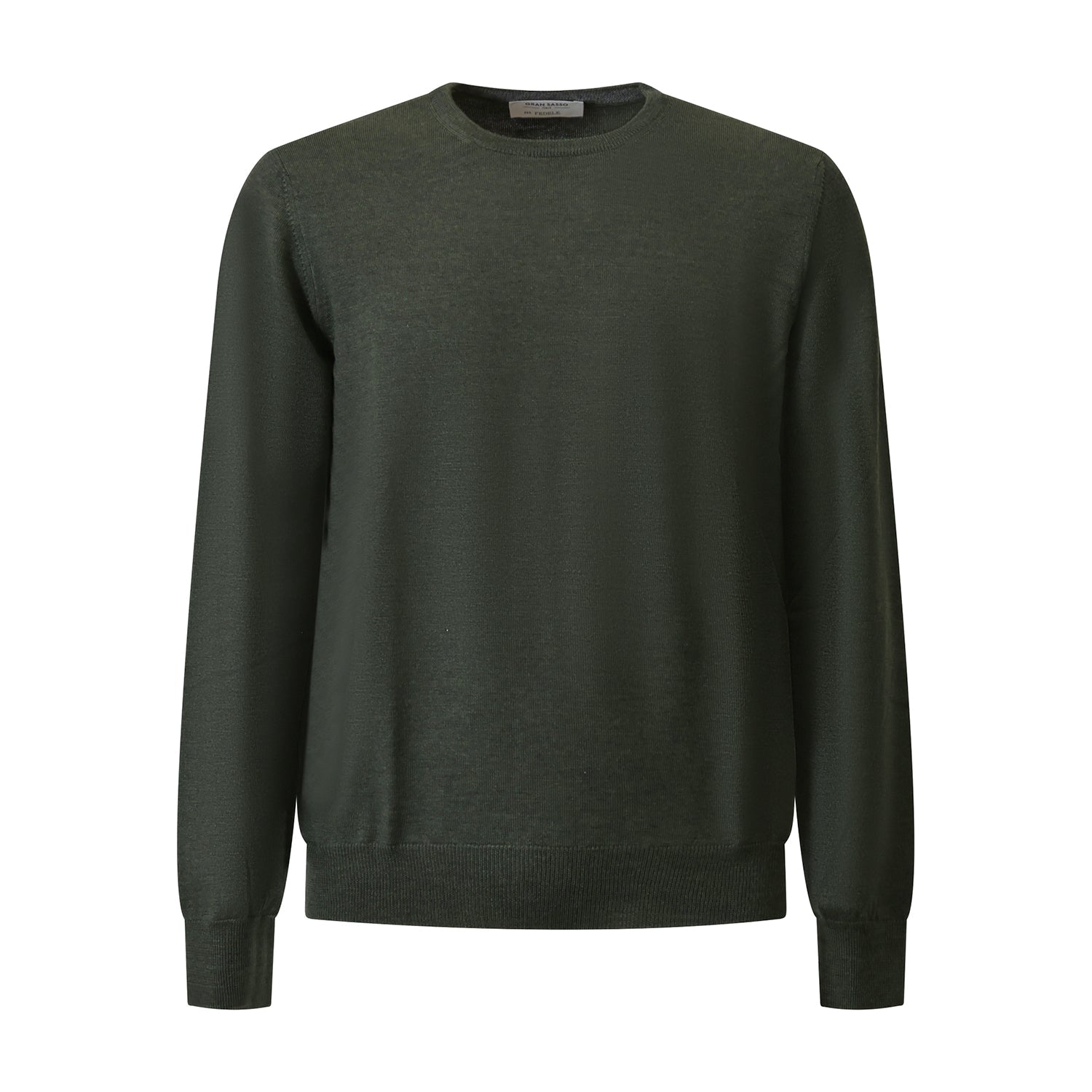 Paricollo verde di GRAN SASSO X FEDELE in lana merinos con bordi e polsi a costine.