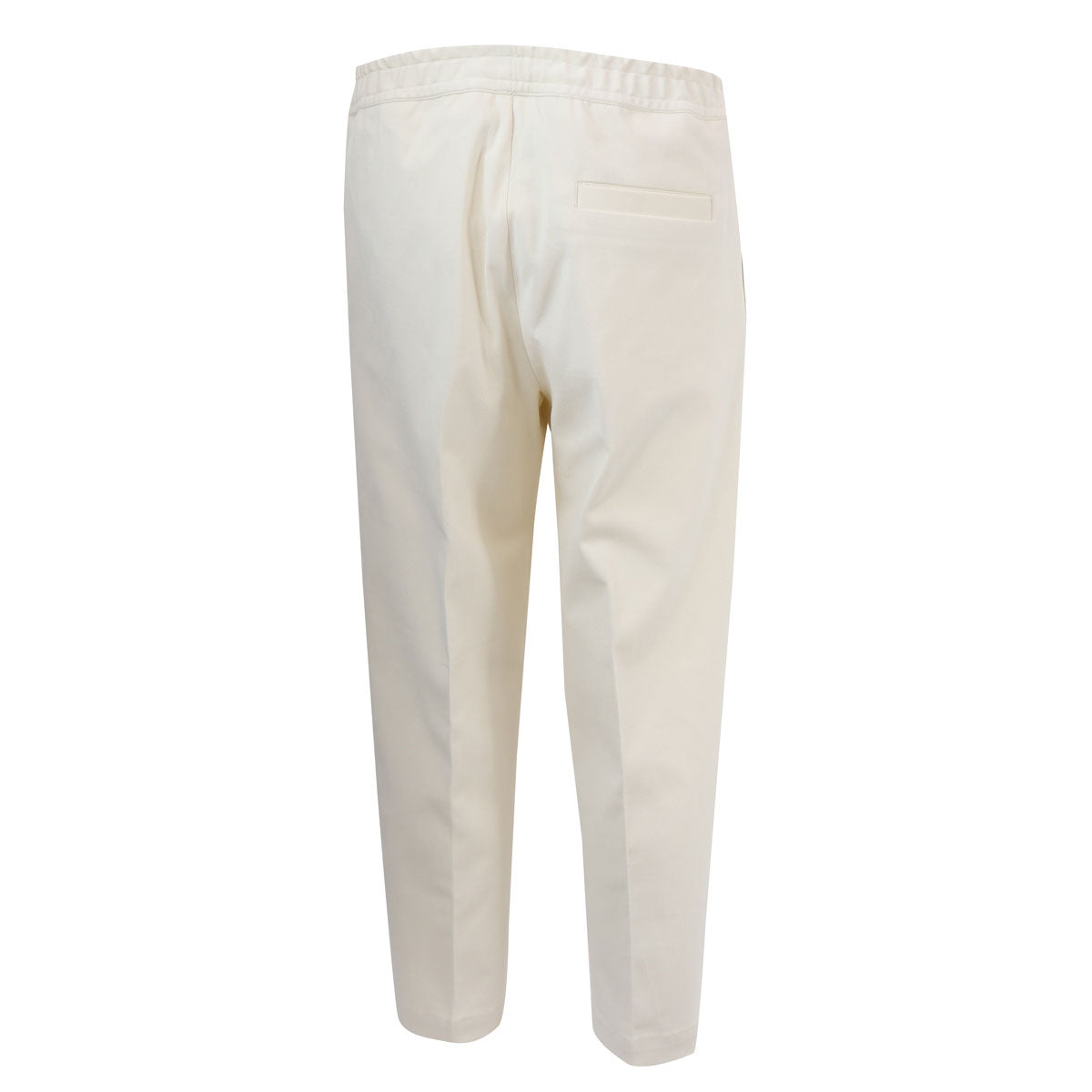 Pantalone SAVOY naturale di QUATTRODECIMI BRIGLIA in cotone con una pence, chiusura con zip nascosta e elastico in vita, tasche anteriori a filetto, tasca posteriore a filetto.