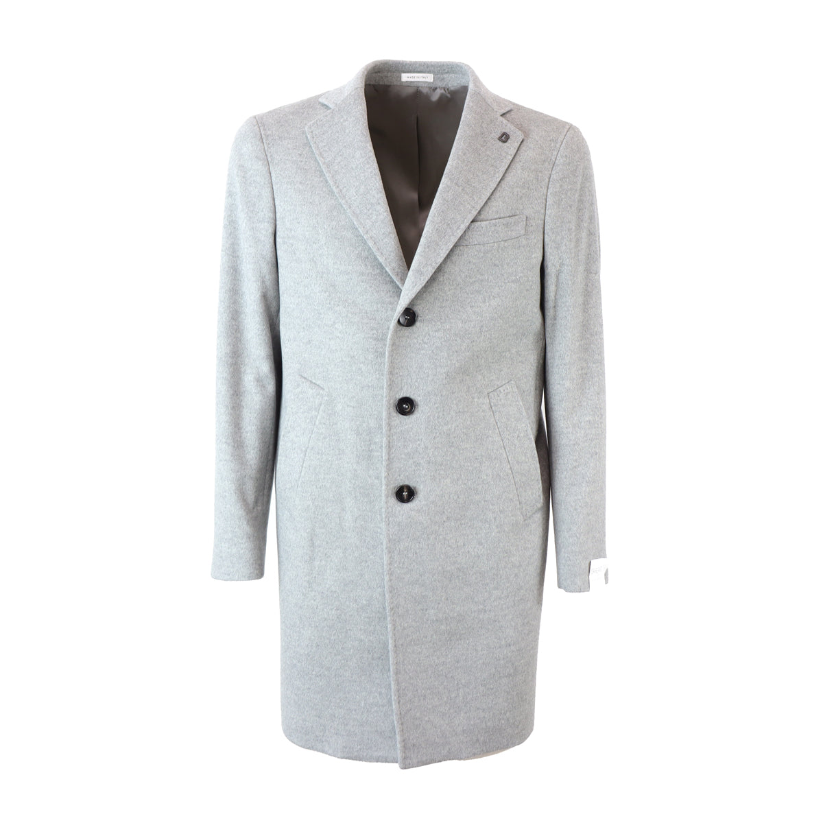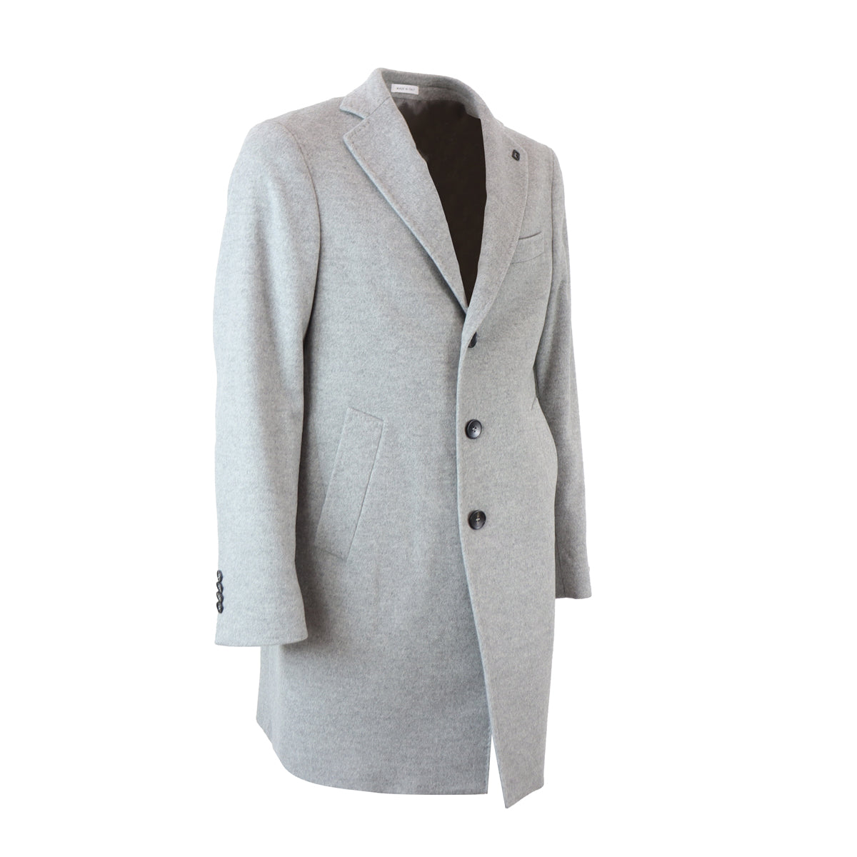 Cappotto DUBLINO grigio di BRERAS in lana vergine con collo a rever, chiusura con 3 bottoni, tasche a filetto e spacco sul retro
