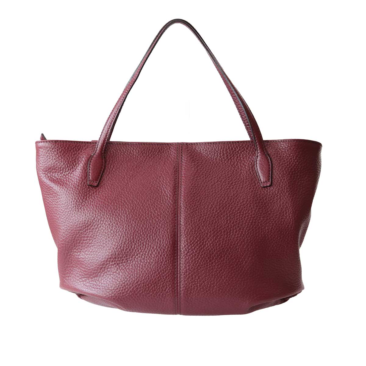 Borsa a mano NATASHA bordeaux di GIANNI CHIARINI in pelle con effetto bottalato, chiusura con zip, doppio manico, tracolla interna. Misure 48x30x15 cm.