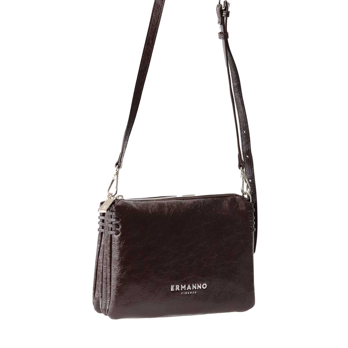 Borsa a tracolla VIVIAN marrone di ERMANNO SCERVINO in ecopelle con effetto lucido, tracolla regolabile, chiusura con zip, tre scomparti e logo in metallo Misure 24x16x6 cm.