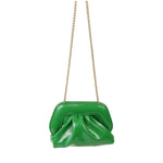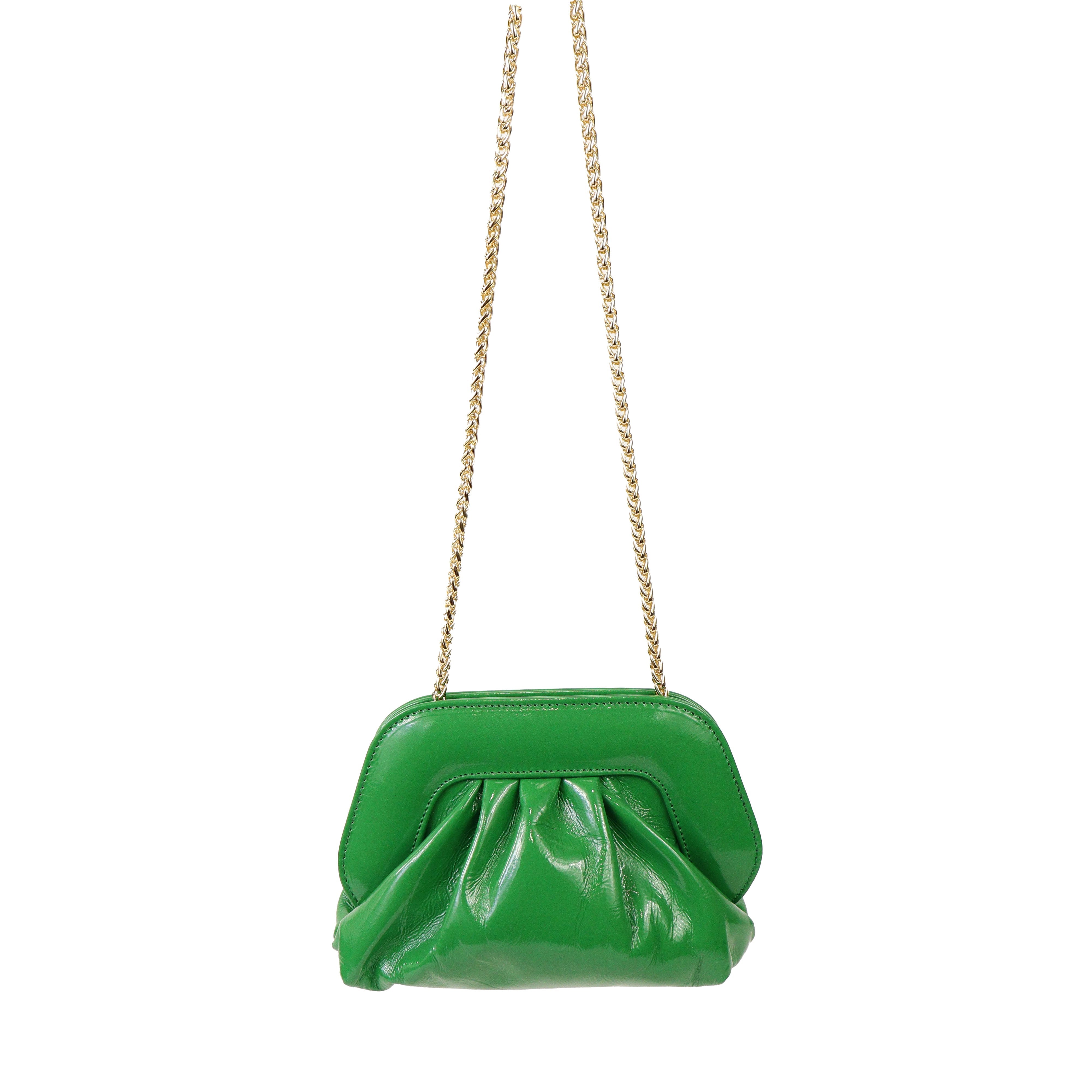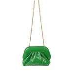 Borsetta c/arriccio verde in vernice di SCARLETT con tracollina a catena color oro e chiusura con clip. Misure 21x17x8 cm cm
