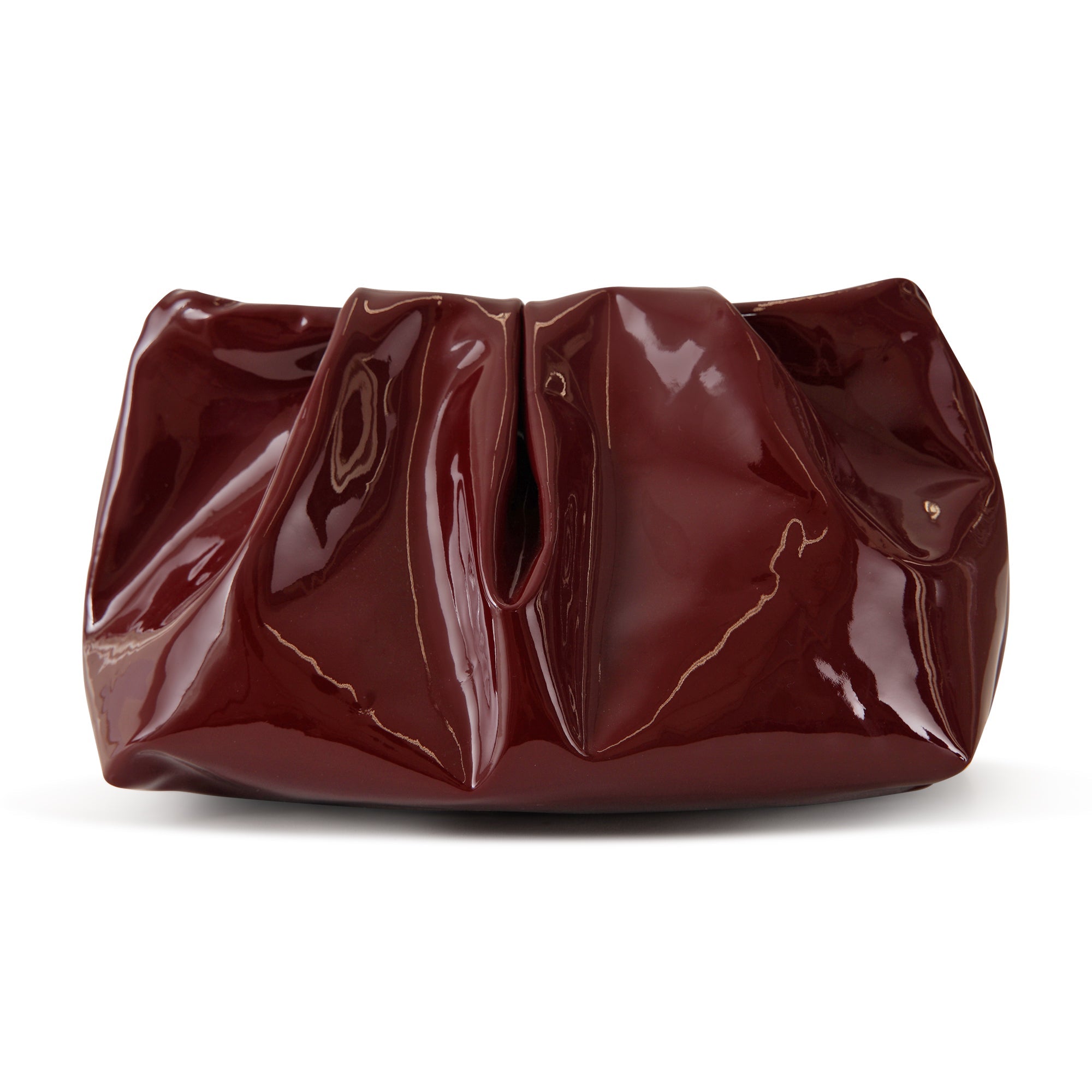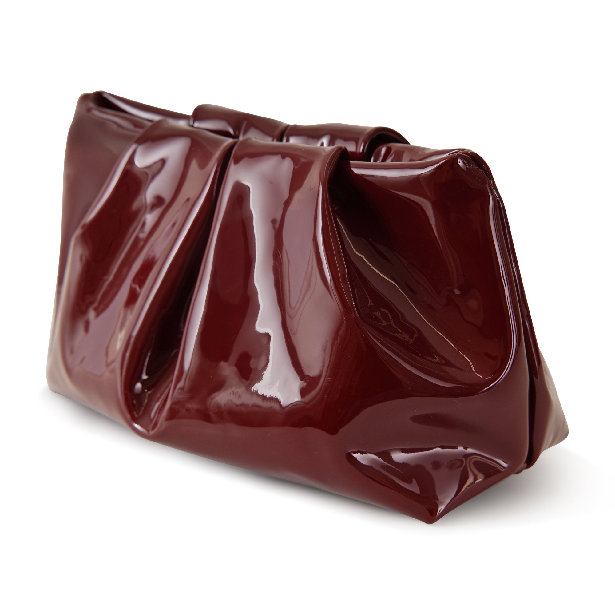 Minibag DRAPPING bordeaux di ALTALUCE in vernice con chiusura con bottone, tracolla con catena in metallo interna. Misure 22x15x9cm.
