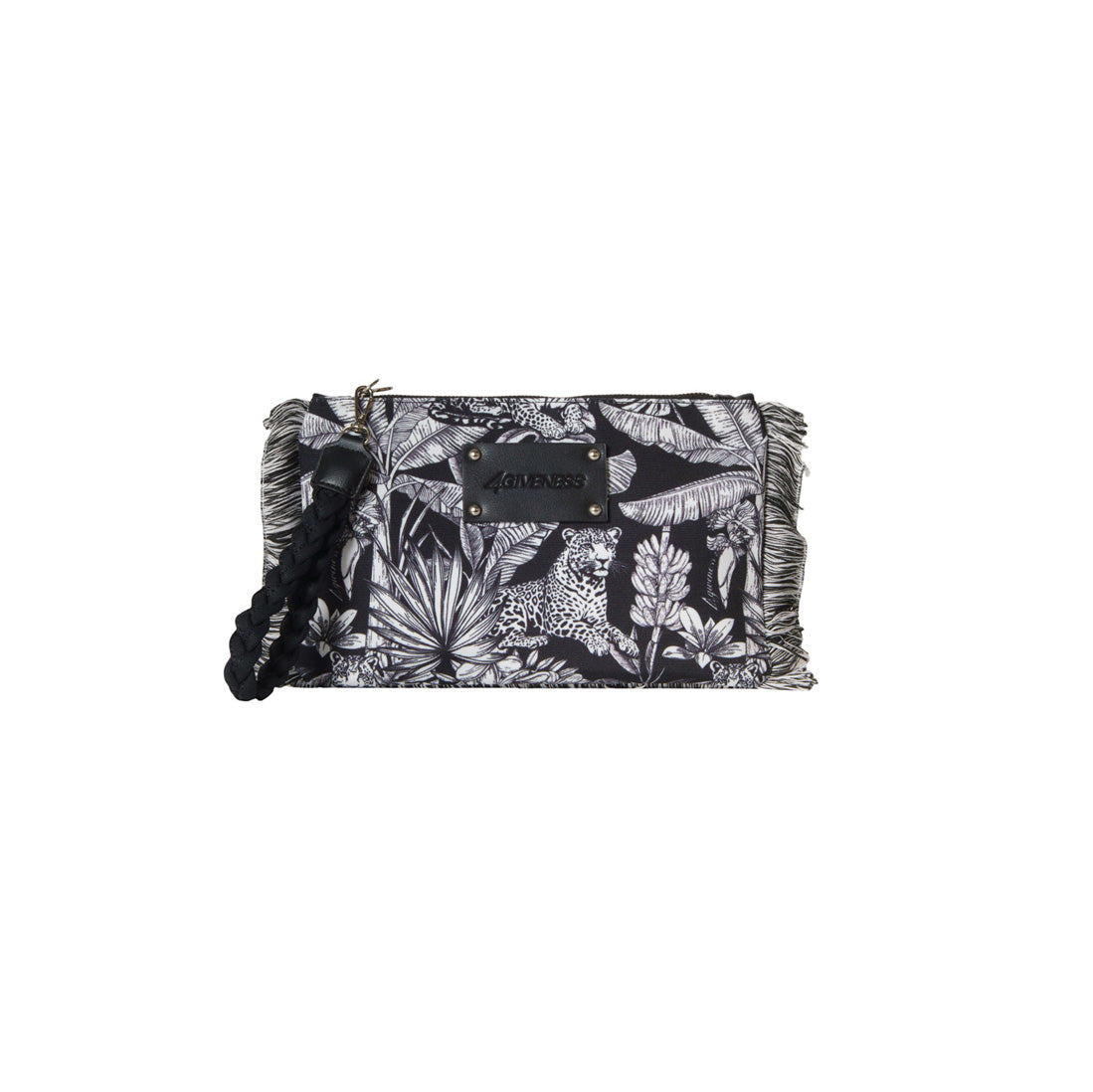 Pochette nera di 4GIVENESS in tessuto con stampa floreale. Misure 30x19x1 cm.