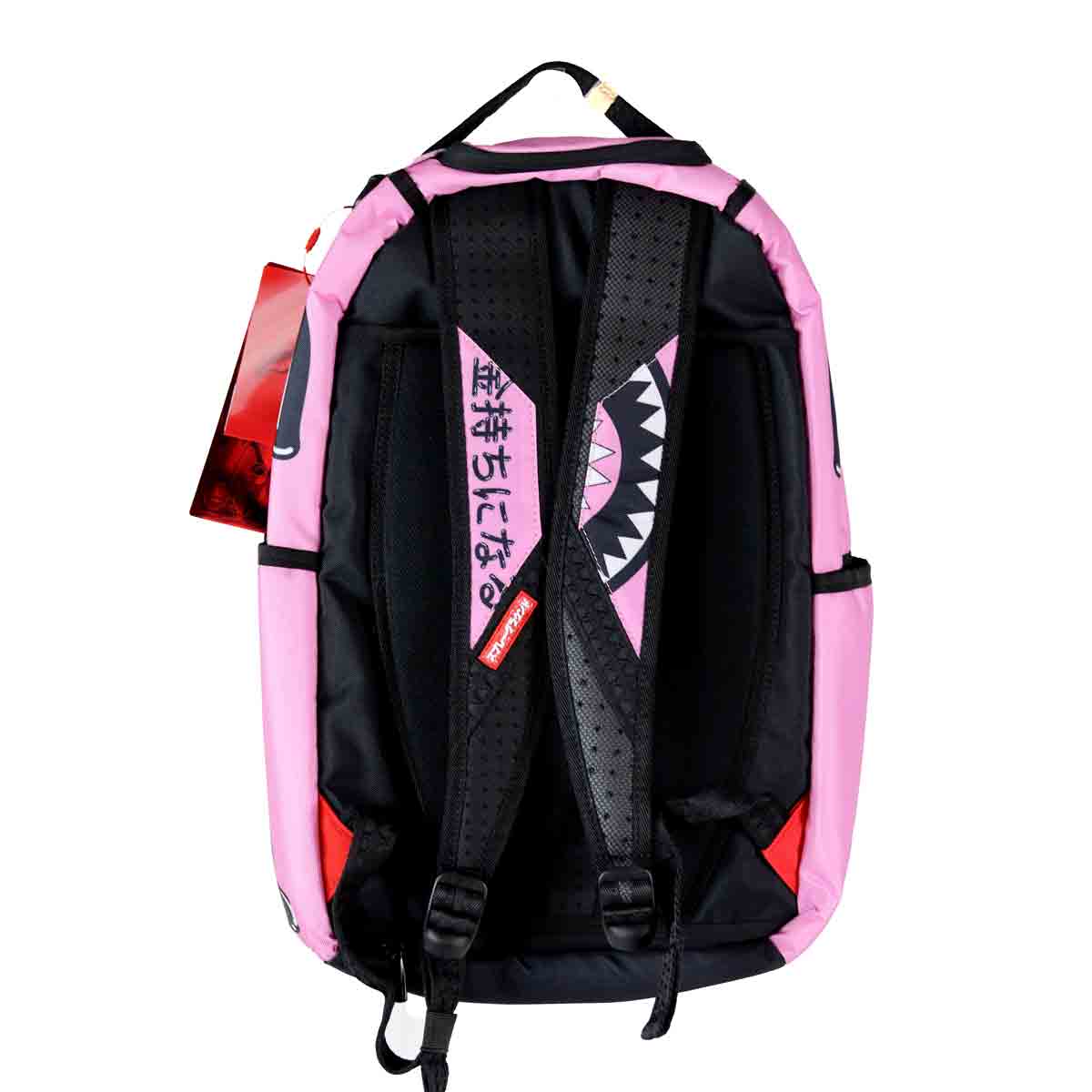 Zaino Shark Japan rosa di SPRAYGROUND in tessuto con stampa giapponese e shark in tinta, apertura con zip superiore. Misure 32x45x18cm.