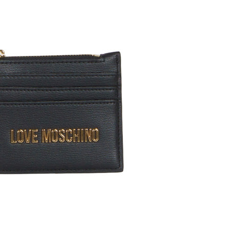 Portacarte nero di LOVE MOSCHINO in ecopelle con chiusura con zip e logo in metallo oro, Misure 10x9x1cm.