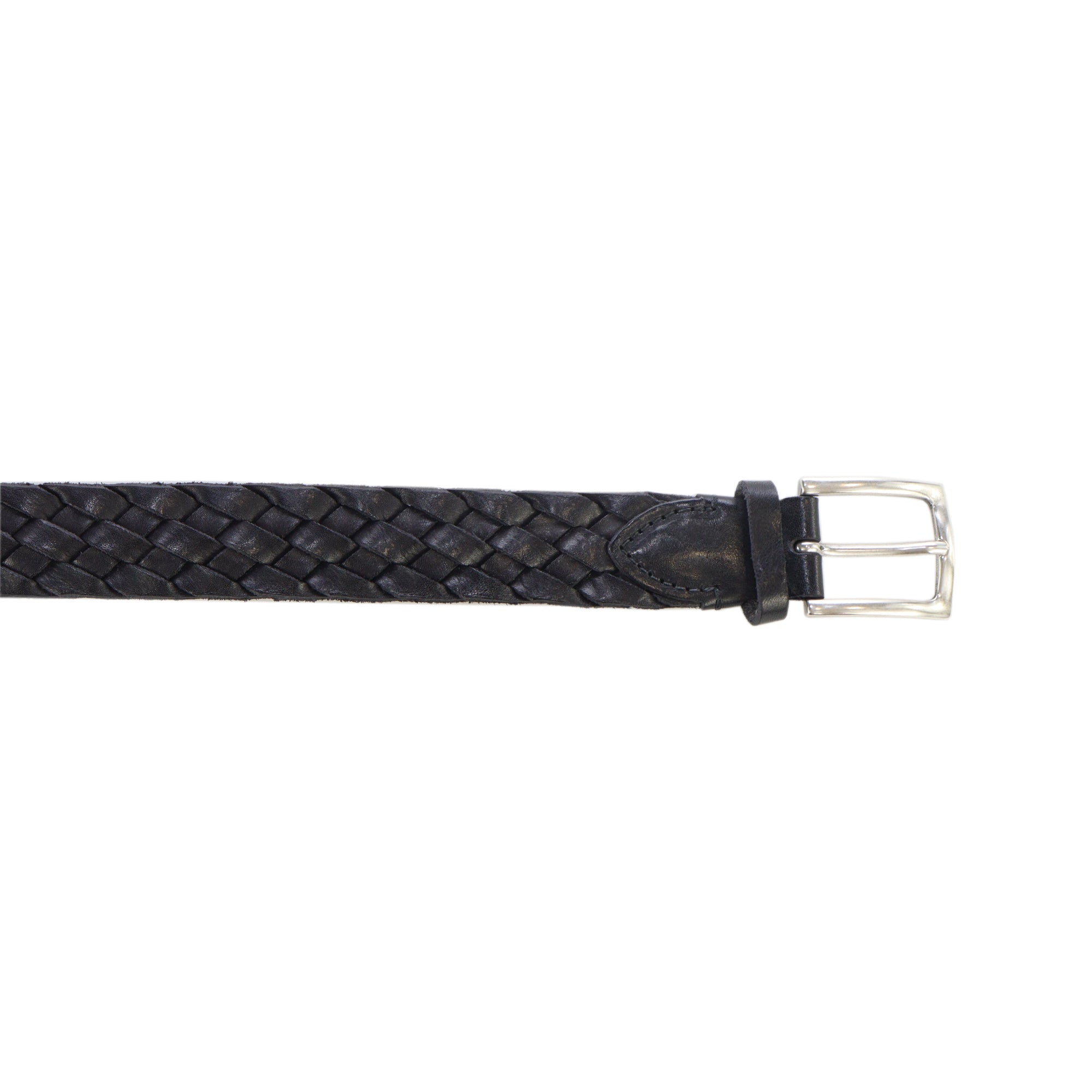 Cintura MAIA nera di GAVEZZANI realizzata in pelle intrecciata con fibbia in acciaio. .