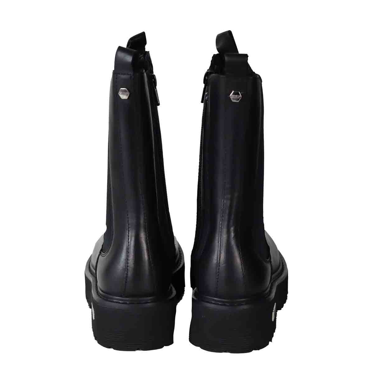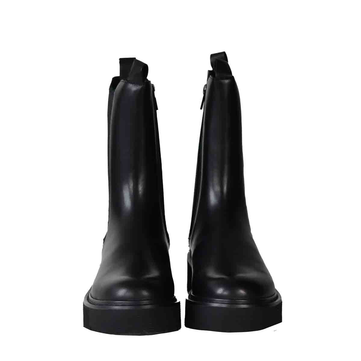 Anfibio SLASH BEATLE nero di CULT in pelle con elastico laterale, zip interna per agevolare la calzata e punta arrotondata. Fondo in gomma alto 4 cm con targhetta logo.
