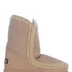 Eskimo24 cammello di MOU in camoscio con interno in montone, cuciture in lana in tinta, logo in tessuto. Altezza 24cm. Fondo in gomma.