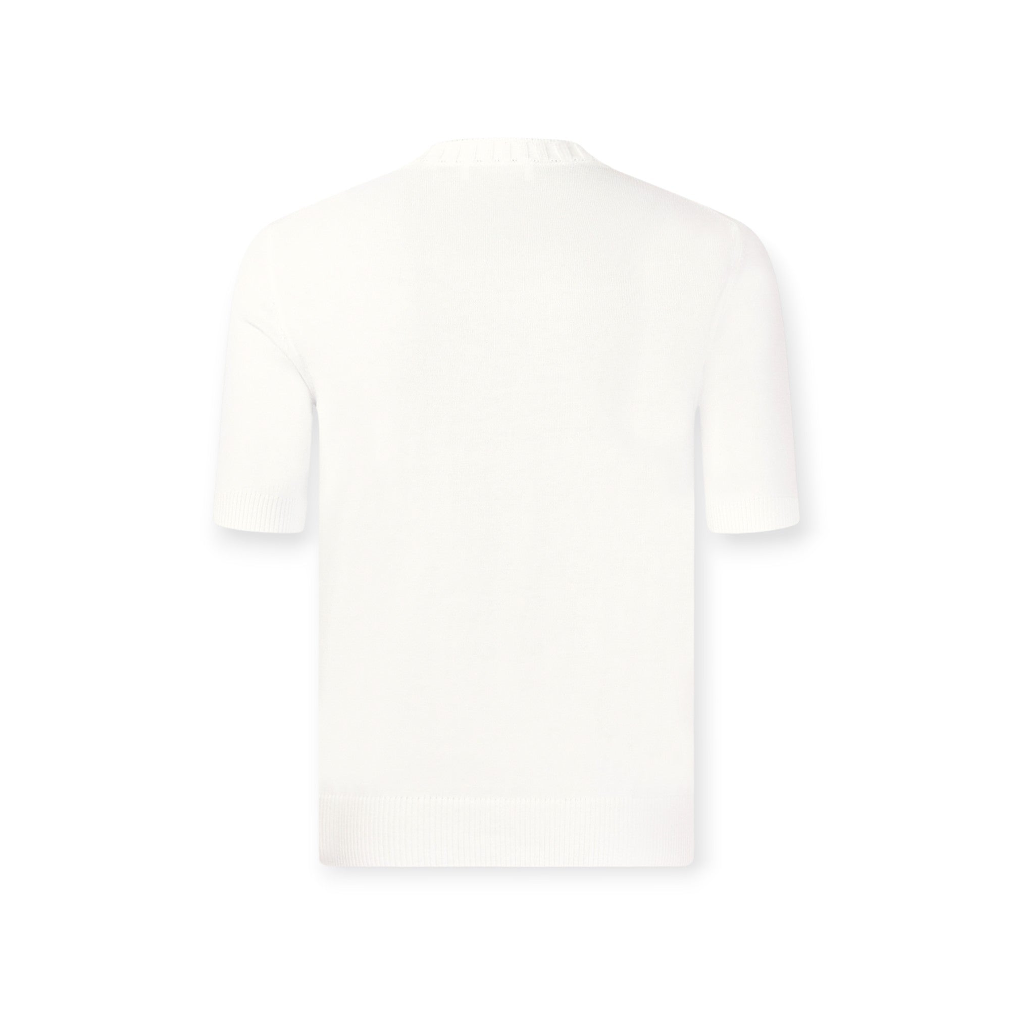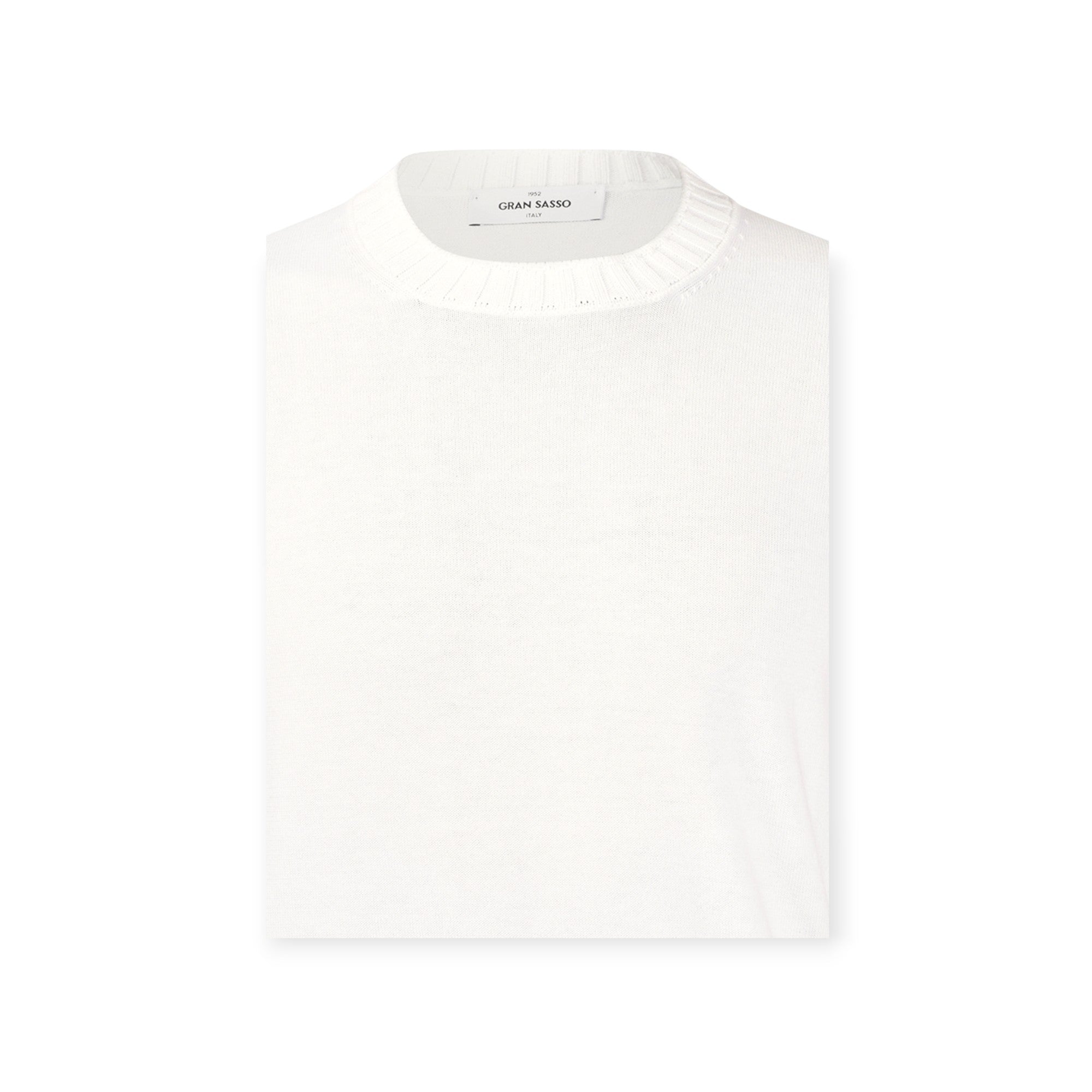 Paricollo mezzamanica bianco di GRAN SASSO X FEDELE in cotone con collo a coste e bordi e maniche a costine.
