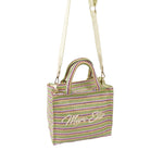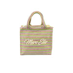 Borsa mare media multicolor BUBY LAS PALMAS M di MARC ELLIS in tessuto e rafia con motivo onde. La borsa è dotata di una tracolla in tessuto regolabile e chiusura con cerniera. All'interno si compone di un unico scomparto avente una tasca chiusa con cerniera. Misure 27x24x14
