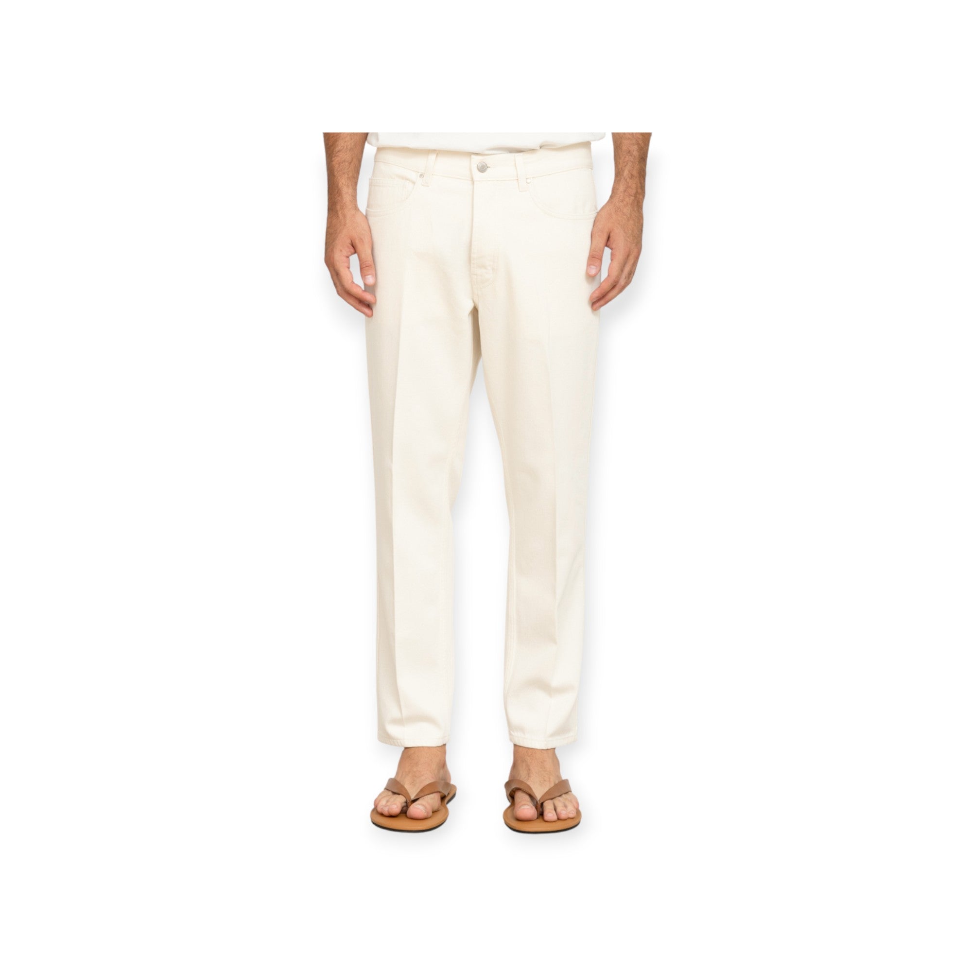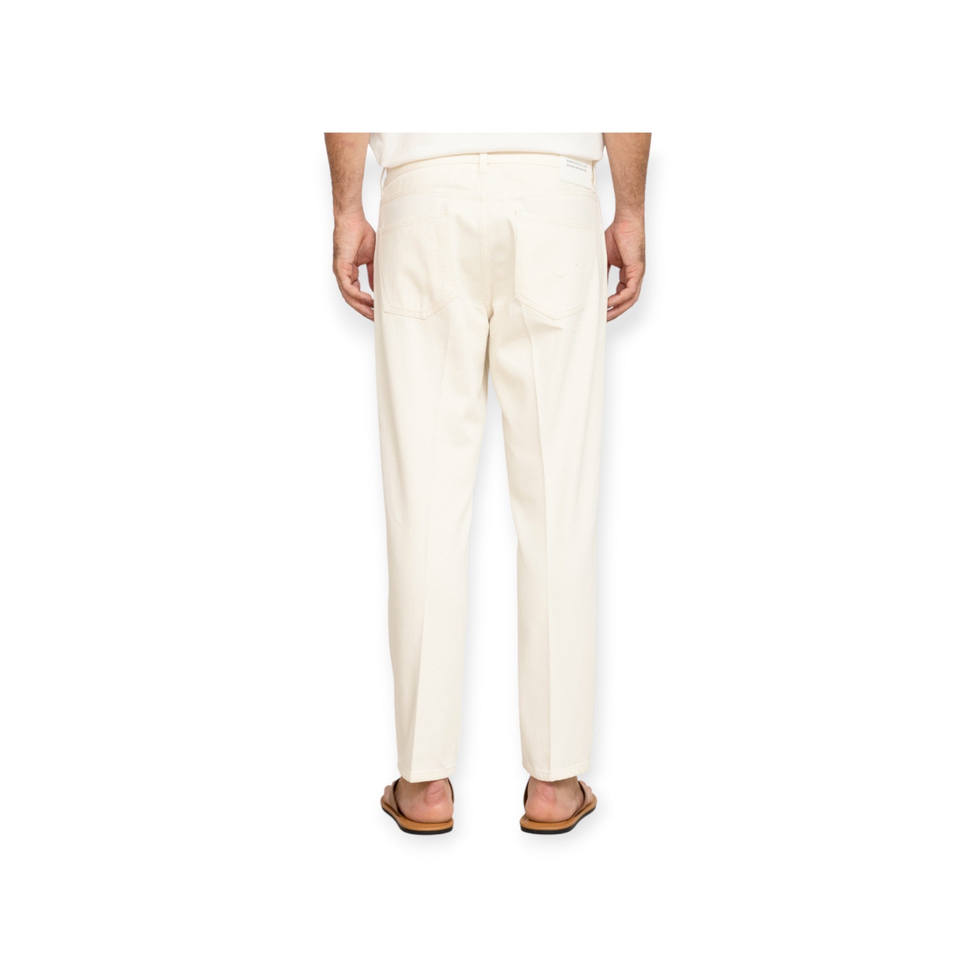 Denim latte SEOUL di DON THE FULLER in cotone con modello carrot fit, 5 tasche, logo pallino in tinta con salpa in bianco con logo lettering. Fondo 17cm.