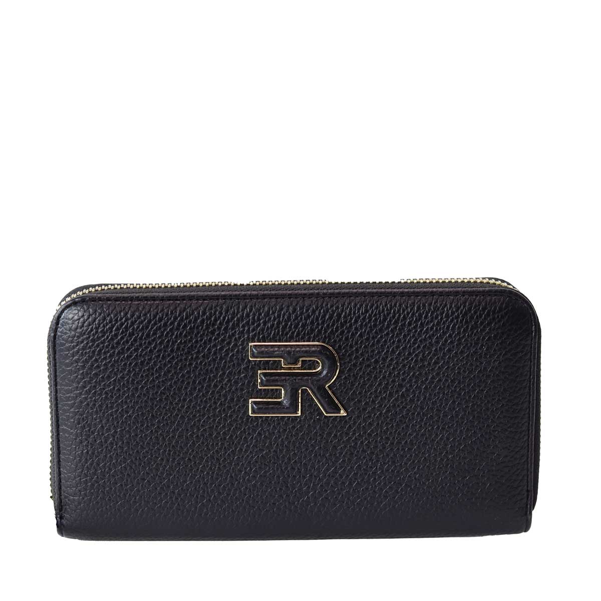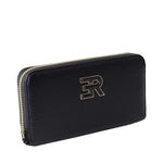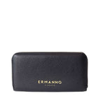 Portafogli VICTORIA nero di ERMANNO SCERVINO in ecopelle con effetto bottalato, zip around in metallo oro, logo in nero e logo posteriore in metallo oro. Misure 20x10x3 cm.