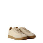 Sneakers GIRANTE beige di MM MAX MARA in pelle con profili in camoscio in tinta, tallone in camoscio con logo e fondo in gomma ambra.