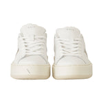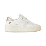 Sneakers HILL PLATFORM bianca di DATE in pelle con tallone in pelle laminata oro, profili in pelle laminata argento. Fondo in gomma platform alto 30mm.