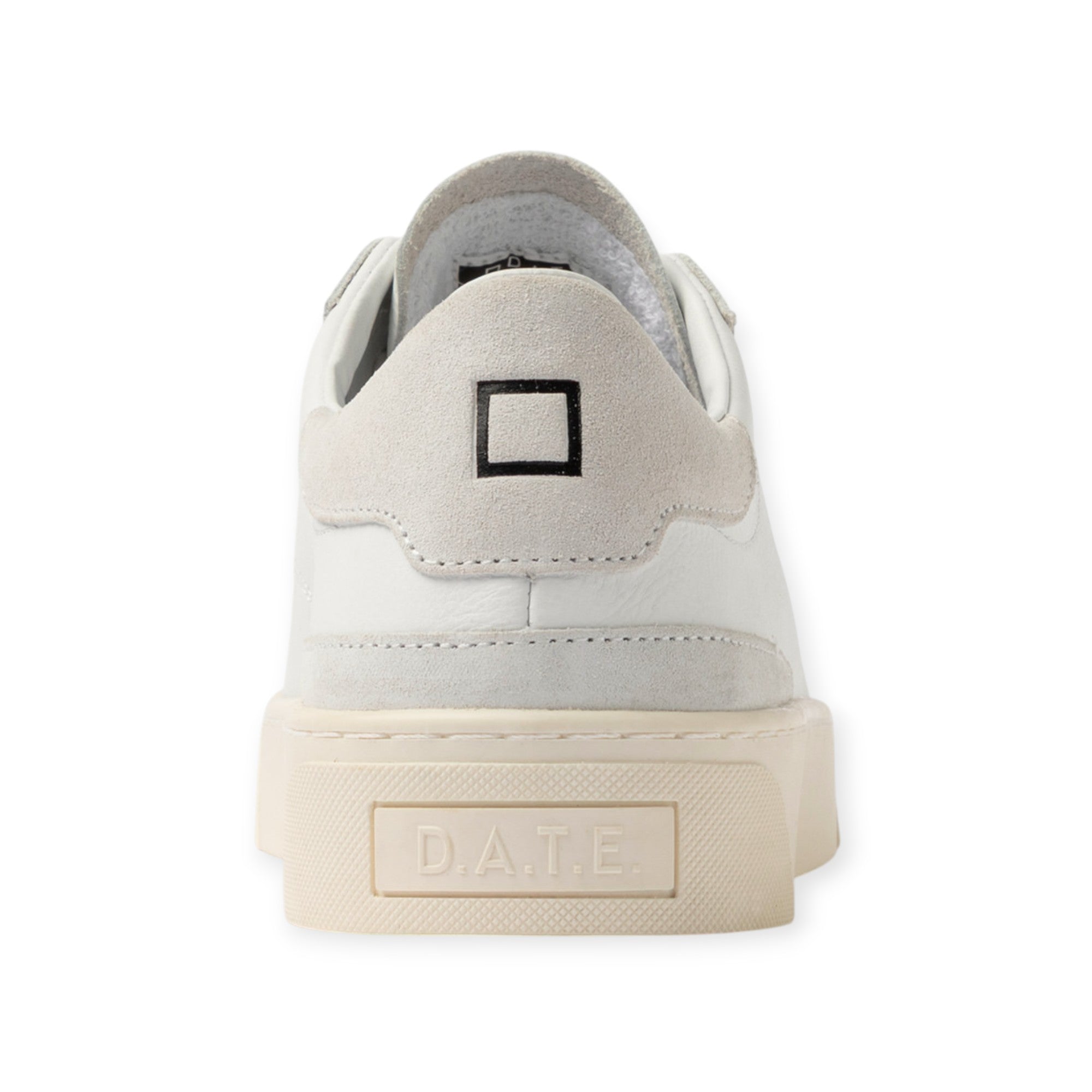 Sneakers SONICA bianca di DATE in pelle con talloncino posteriore in camoscio bianco con logo impresso in nero. Fondo in gomma alto 3cm.
