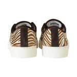 Sneakers TENDER zebrata di DATE in cavallino con profili in camoscio marrone e fondo in gomma bianca.