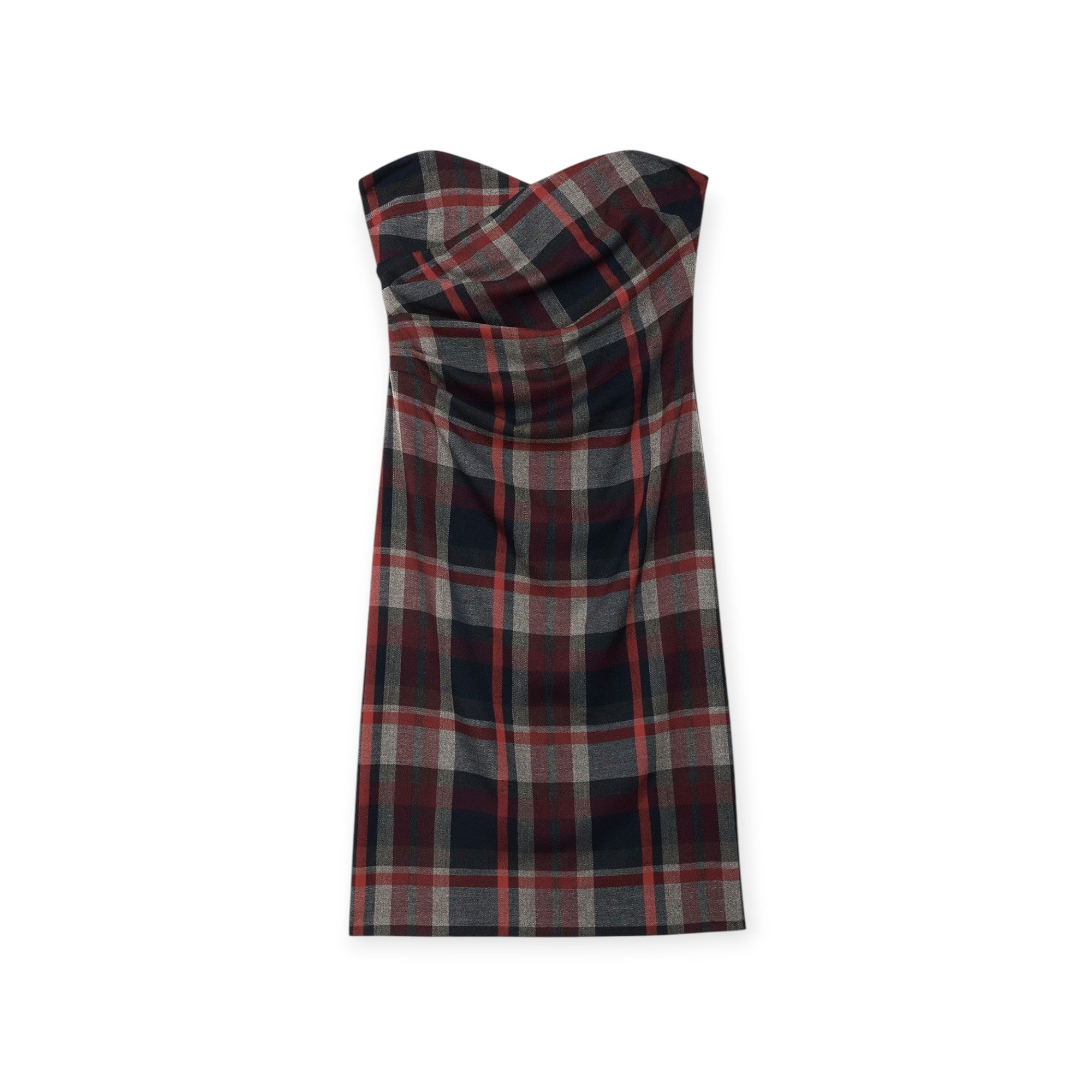 Abito midi check di OTTOD'AME in viscosa con effetto bustier e stampa check.