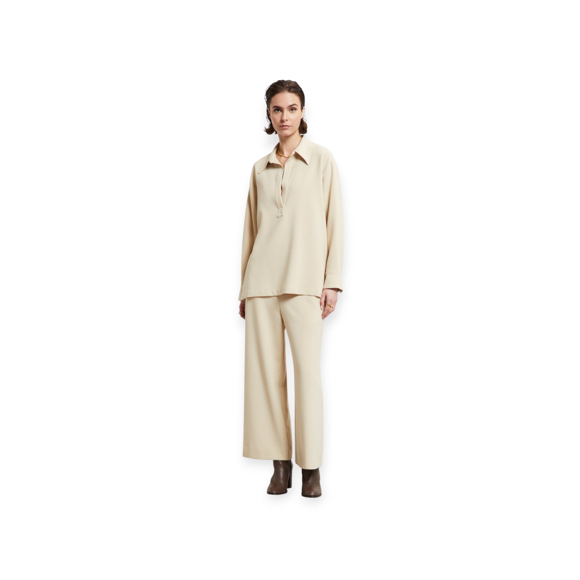 Pantalone beige di OTTOD'AME in poliestere con coulisse in vita, tasche a filetto, fondo ampio.