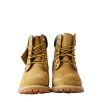 Anfibio PREMIUM 6 LACE giallo di TIMBERLAND in pelle con effetto nabuk waterpoof con 6 fori altezza MID e collarino in pelle imbottita marrone. Fondo carrarmato in gomma.
