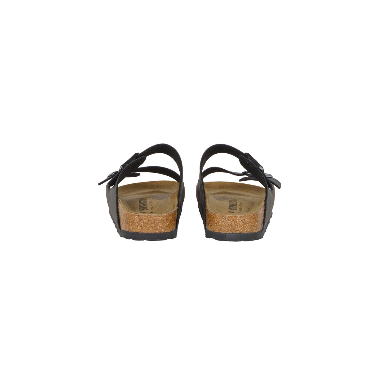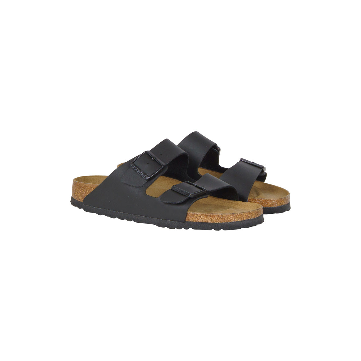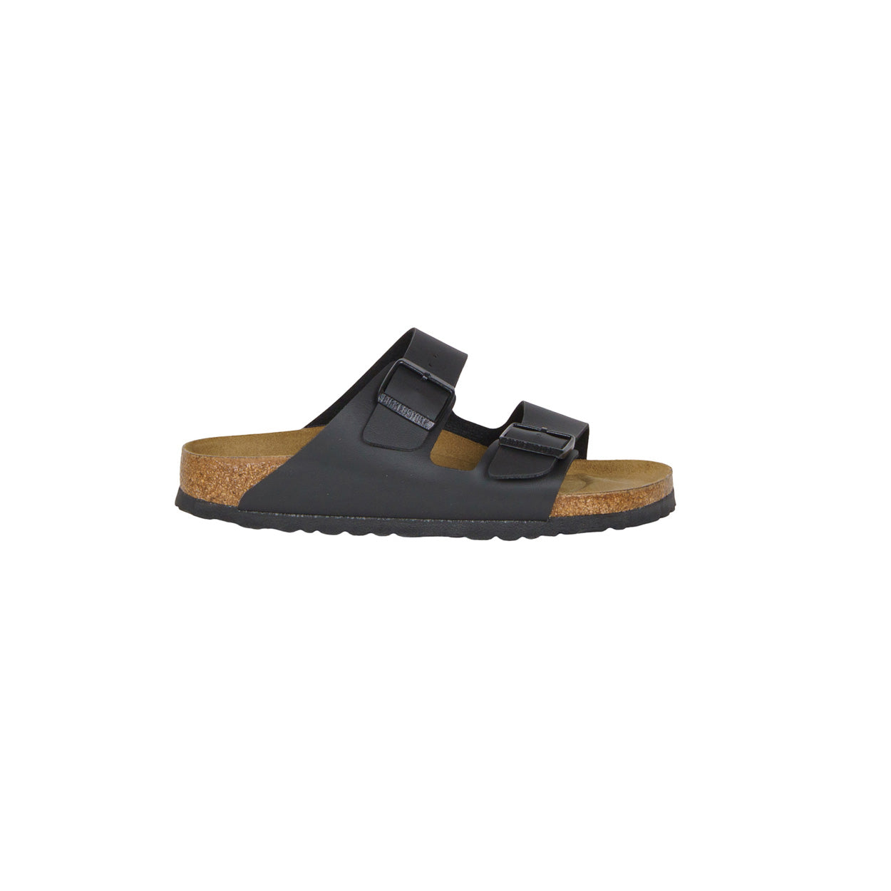 Ciabatta ARIZONA nero di BIRKENSTOCK in pelle birkoflor con doppia fibbia in metallo regolabile e sottopiede in pelle scamosciata. Narrow fit.
