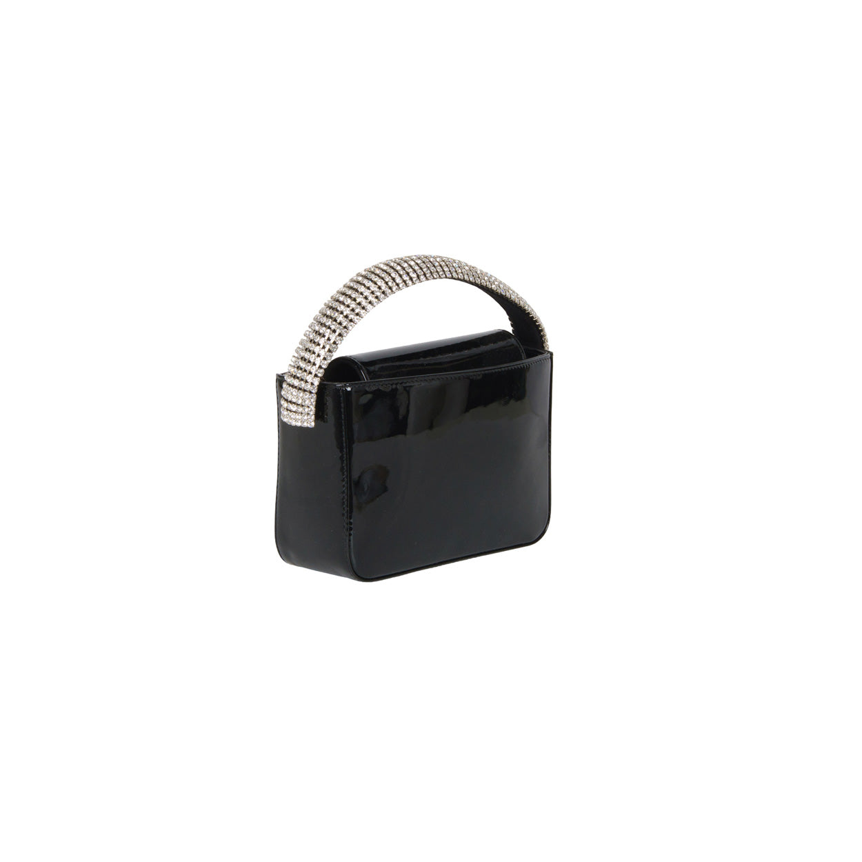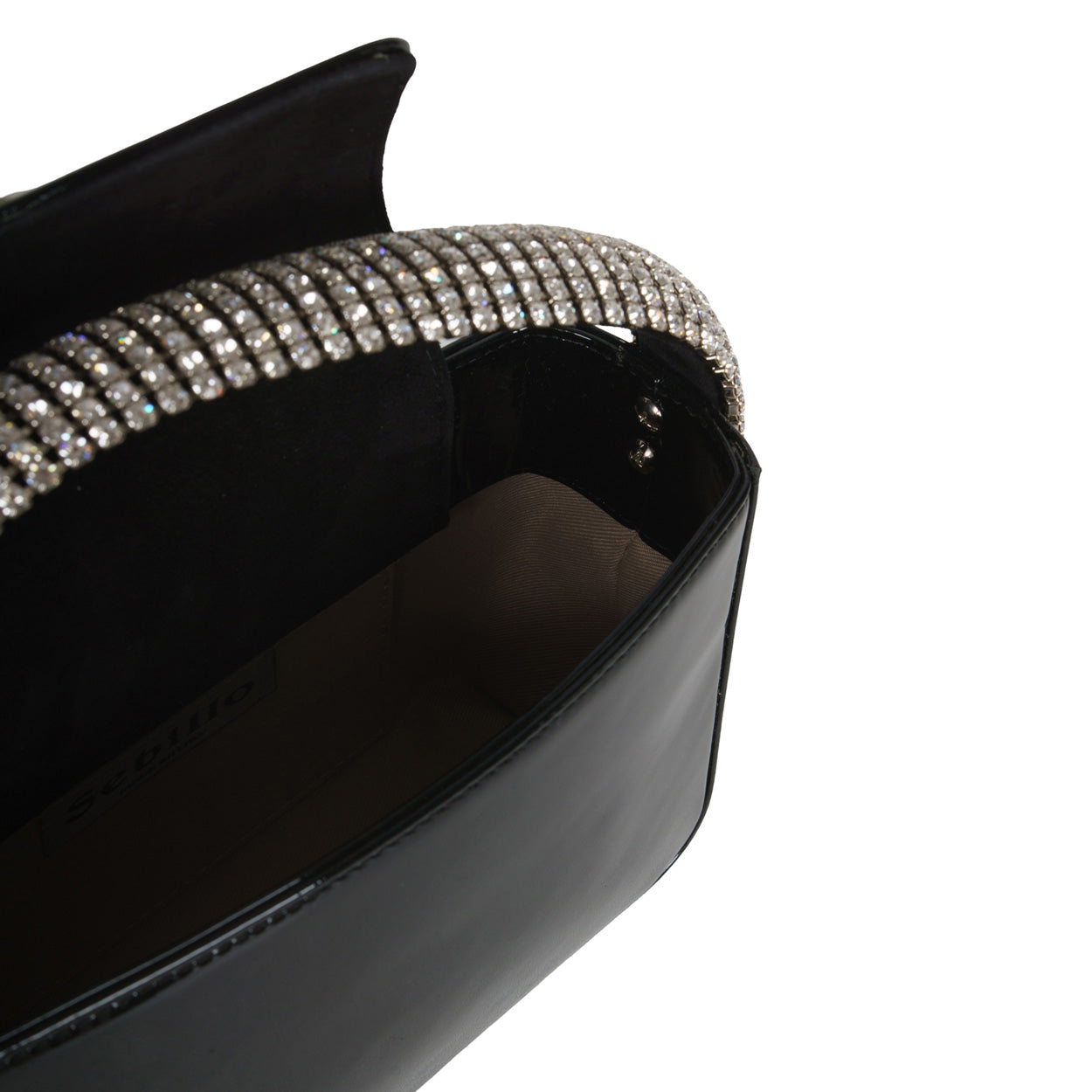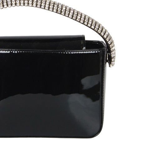 Borsa a mano nero di SEBILLO in pelle verniciata con manico all around in cristalli. Misure 20x14x7cm.
