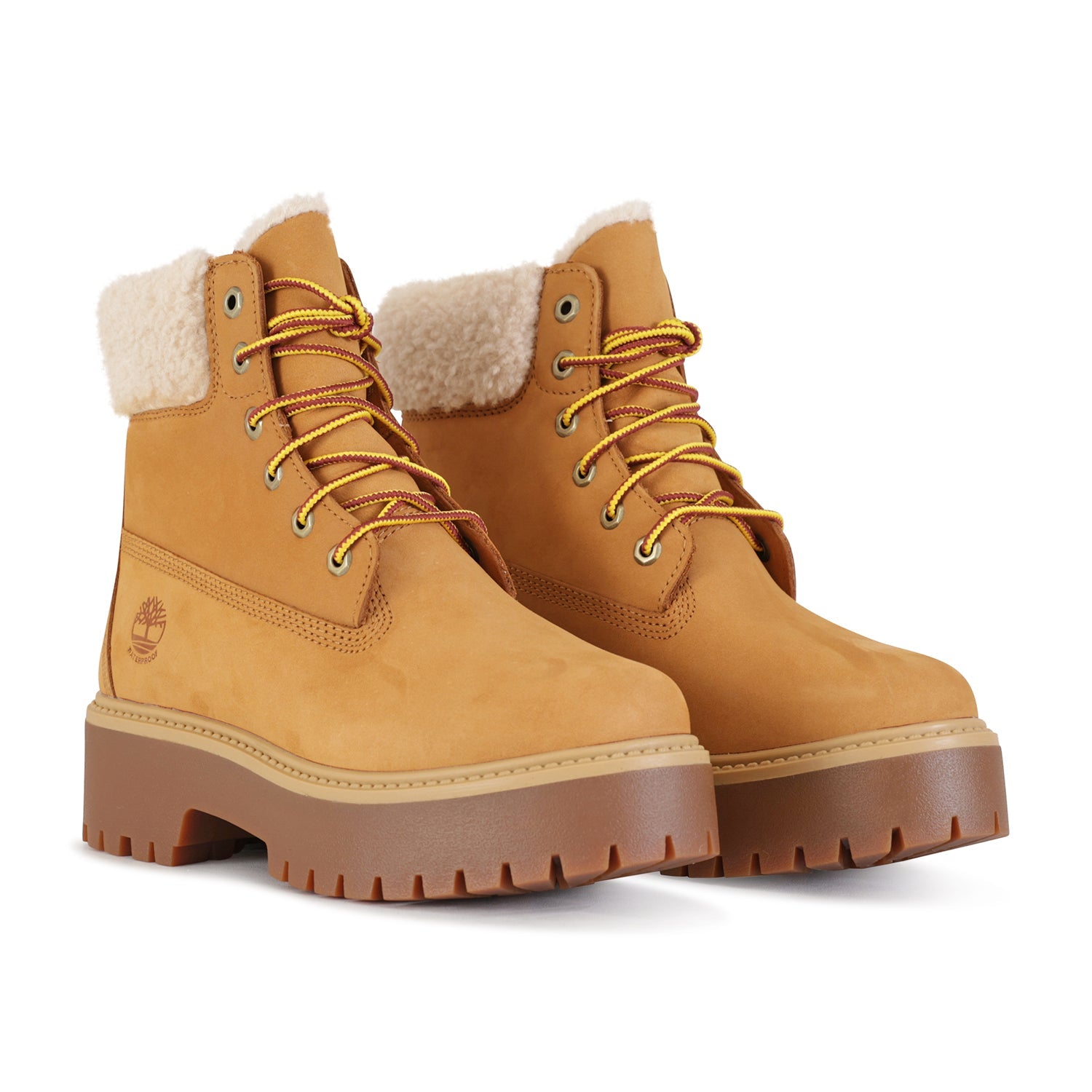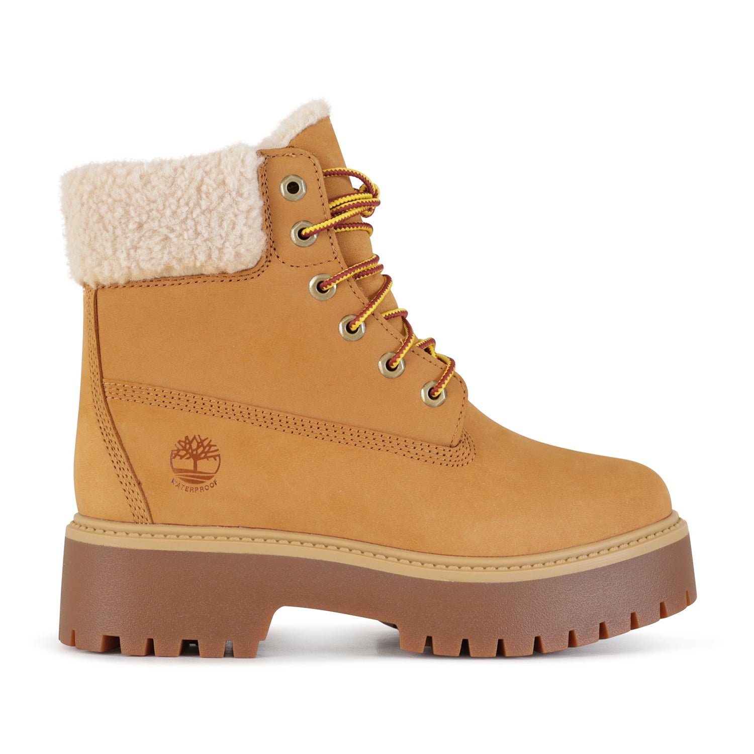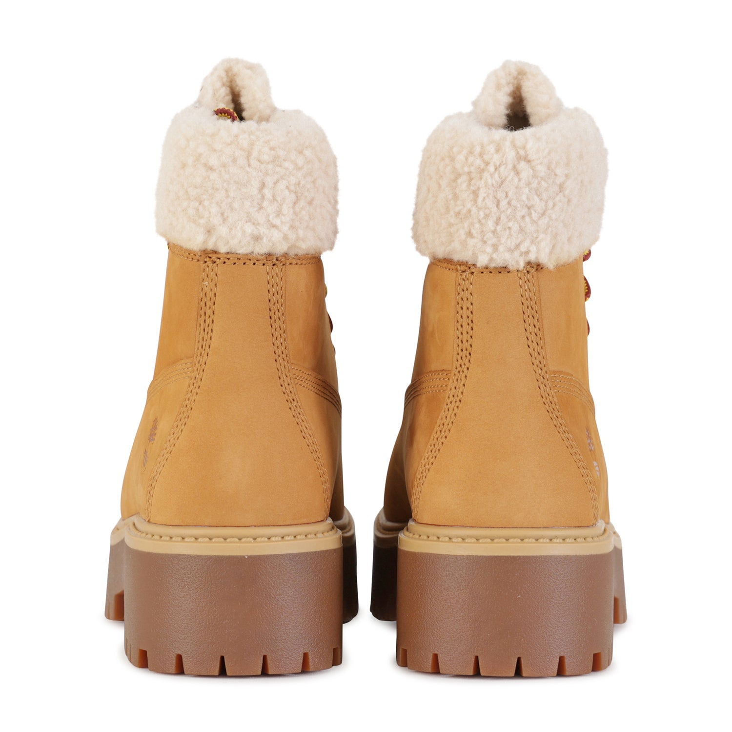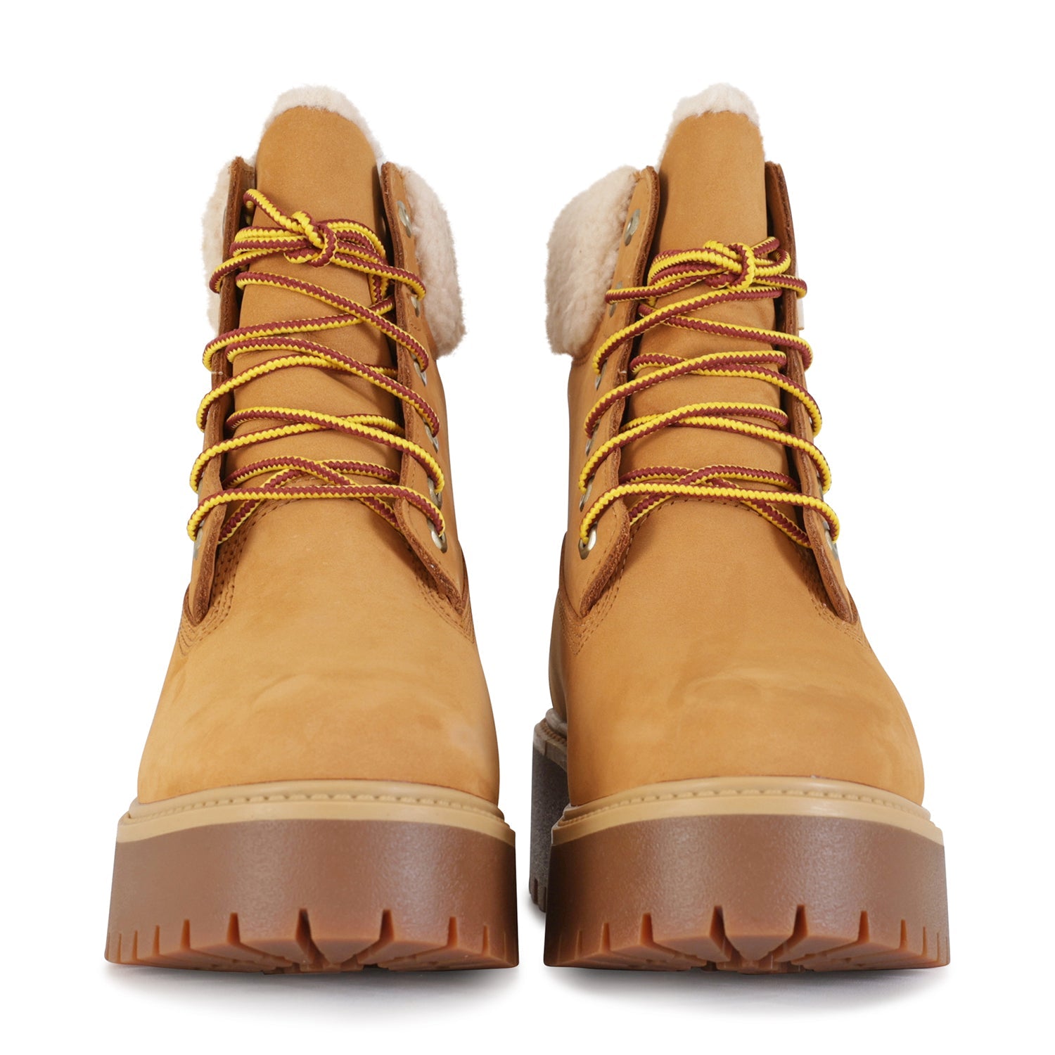 Anfibio STONE STREET giallo di TIMBERLAND in nabuk con collarino in ecopelliccia, modello 6 buchi, fondo in gomma carrarmato alta 40mm.