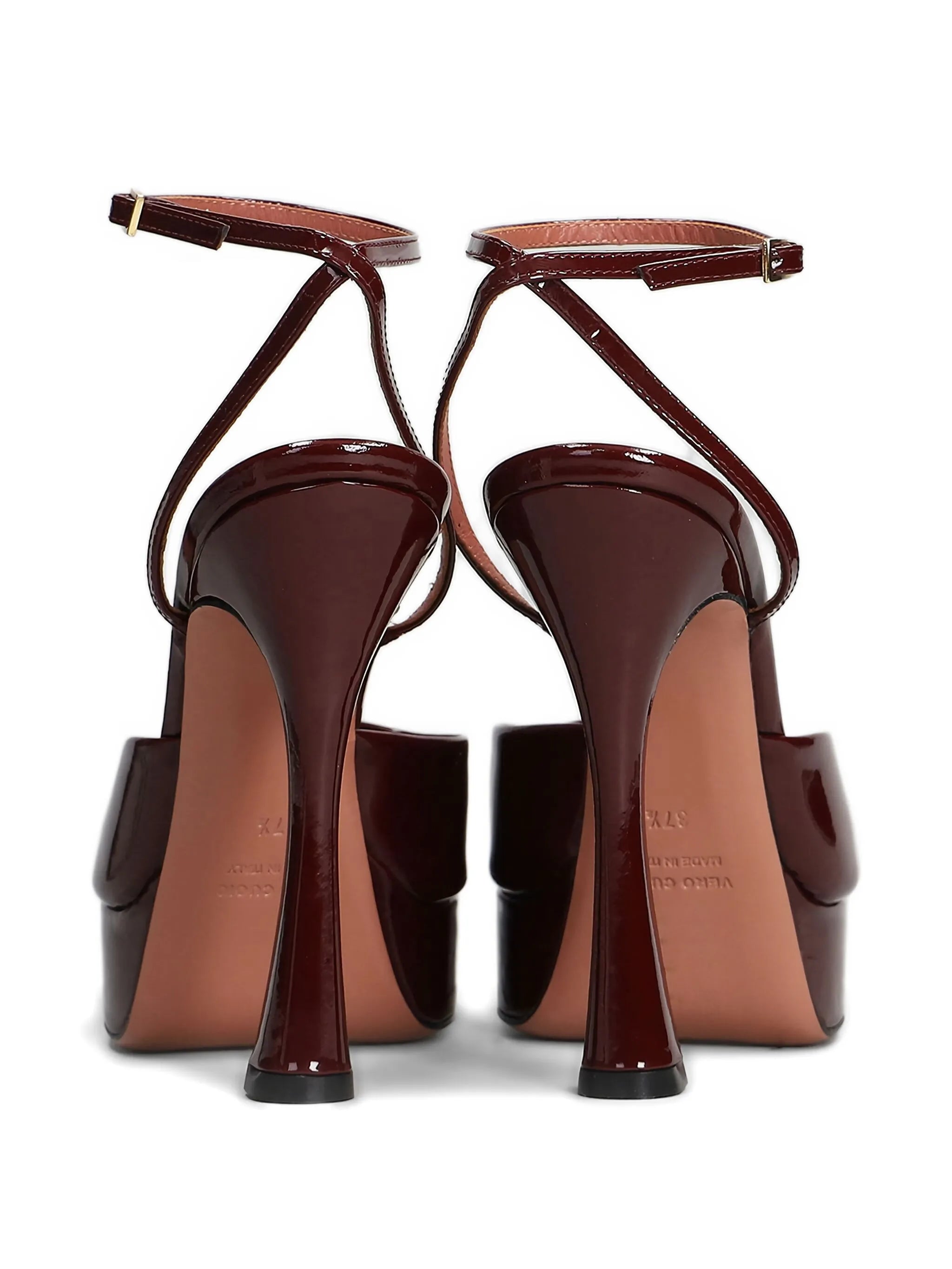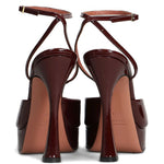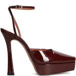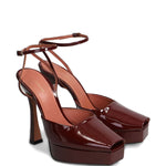 Sandalo VICKY bordeaux di CASTAGNA in vernice con cinturino alla caviglia, spuntato, tacco 130mm e plateau 40mm, fondo in cuoio.