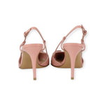 Slingback VLOGO rosa di VALENTINO GARAVANI in vernice con accessorio logo laccato in tinta, tacco 80mm, fondo in cuoio.