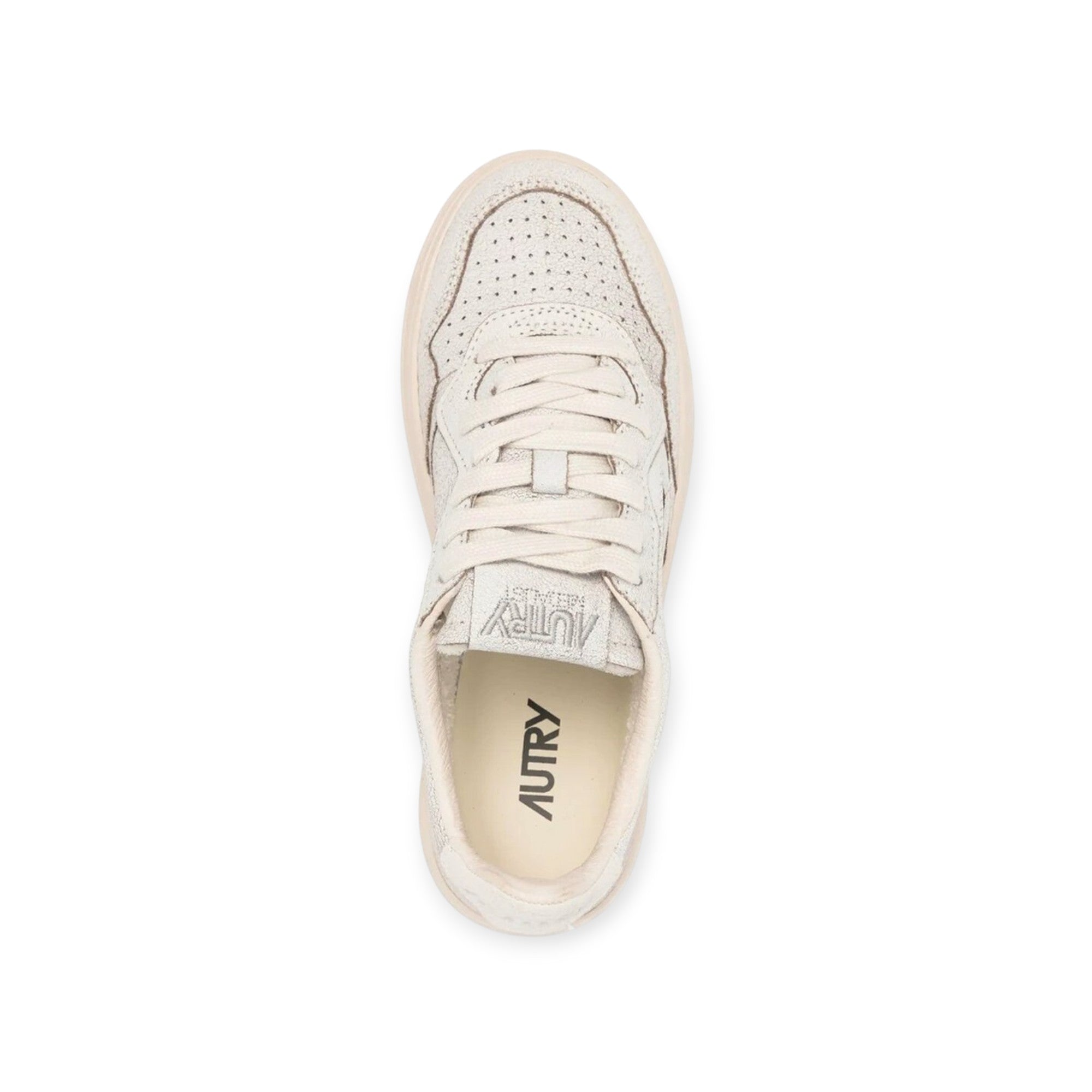 Sneakers MEDALIST cipria di AUTRY in pelle con effetto crackele, patch con logo laterale, punta traforata e fondo in gomma.