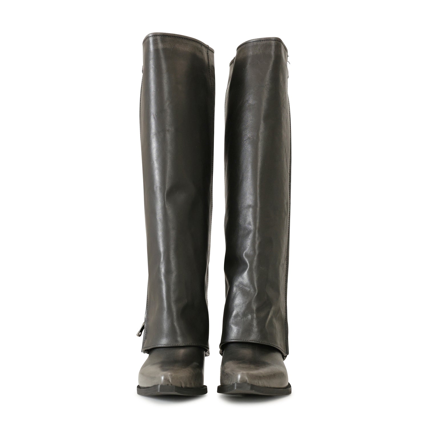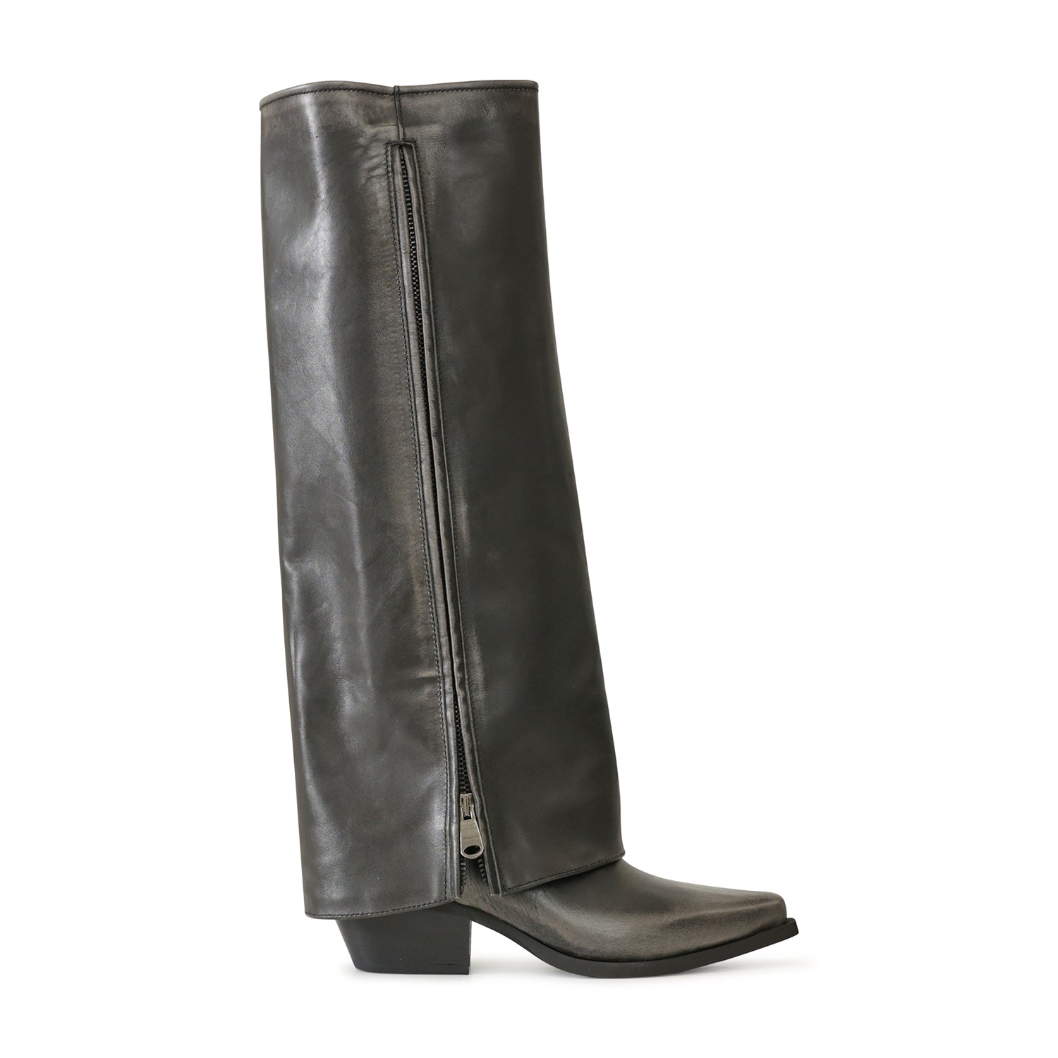 Texano grigio di METISSE in pelle con effetto vintage, risvolto con full zip, fondo in gomma con tacco 40mm.