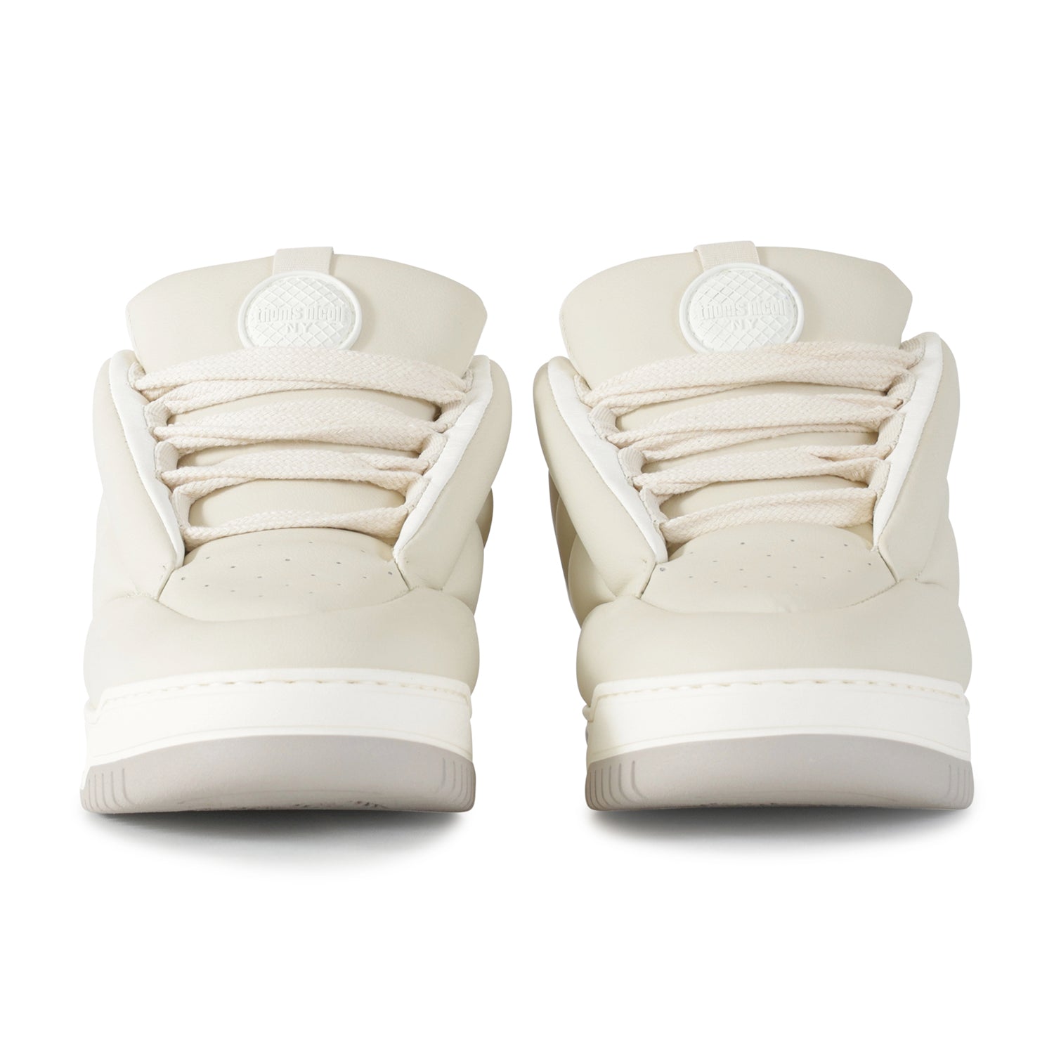 Sneakers PLUF off white di THOMS NICOLL in pelle con lacci, tomaia con imbottitura, fondo in gomma.