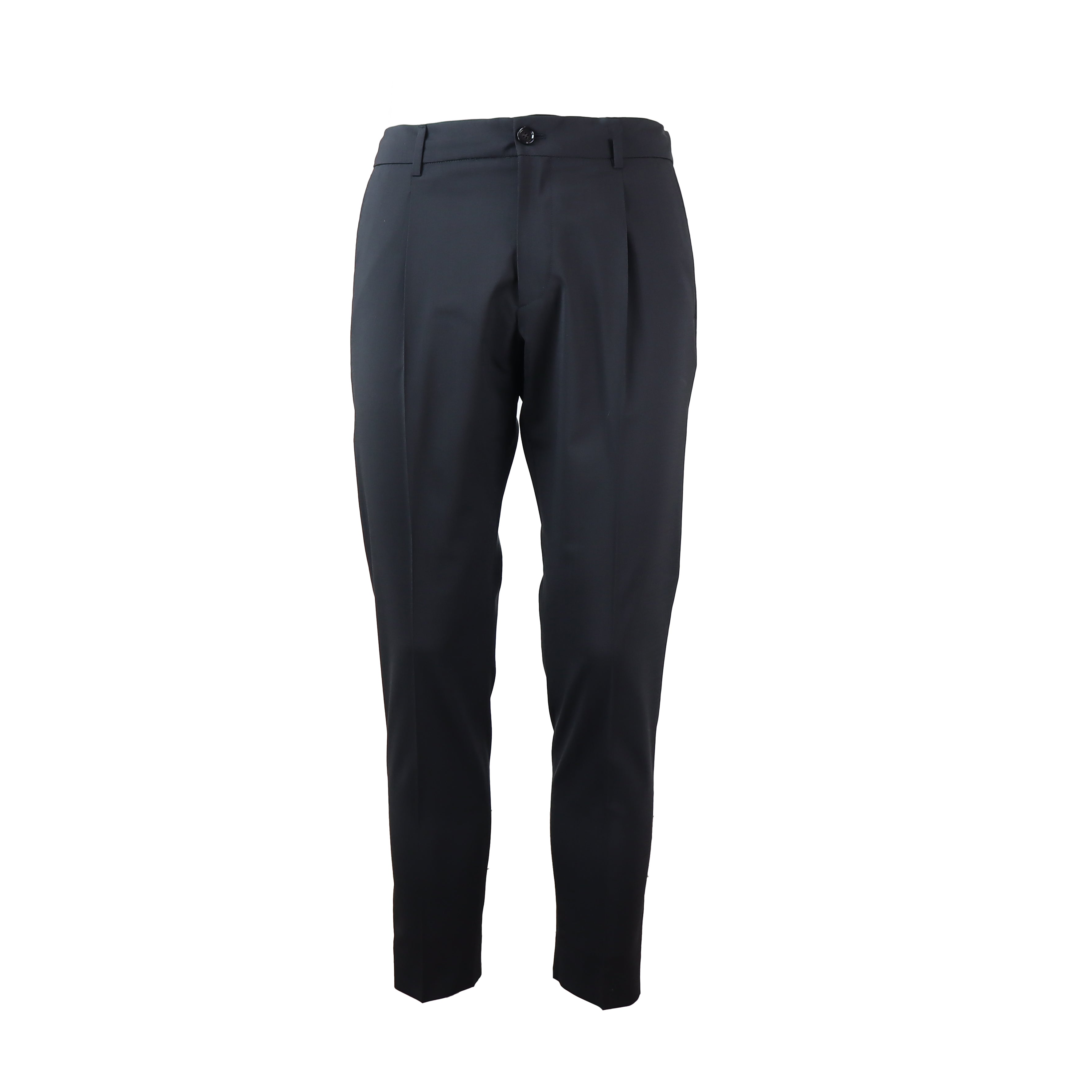 BE ABLE Riccardo black trousers in wool blend with a single pleat, drawstring waist, American pockets, button and zip closure, and rear welt pockets.