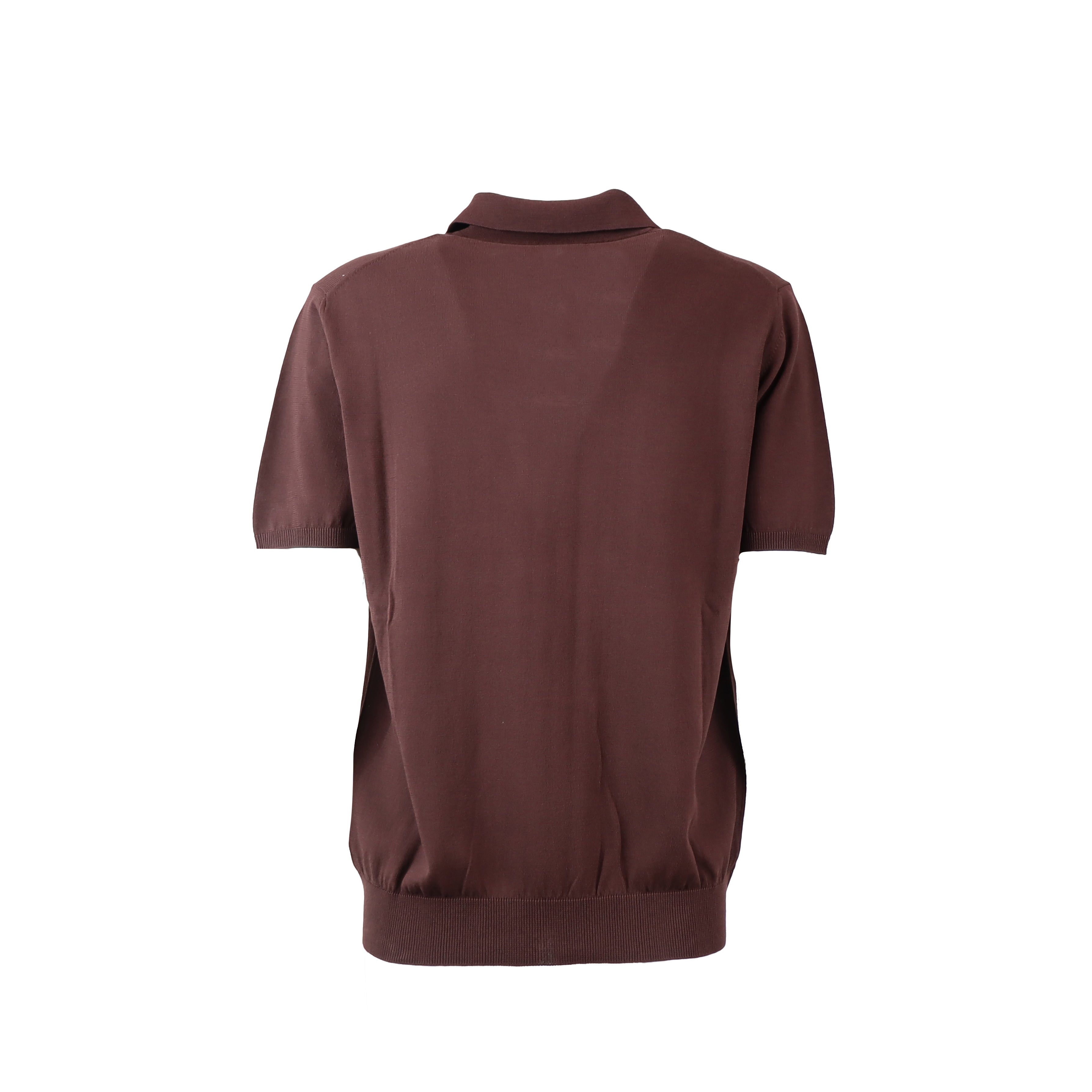 Chocolate skipper by ALPHA STUDIO in cotton with shirt collar, slight V-neck, ribbed sleeves and hem.