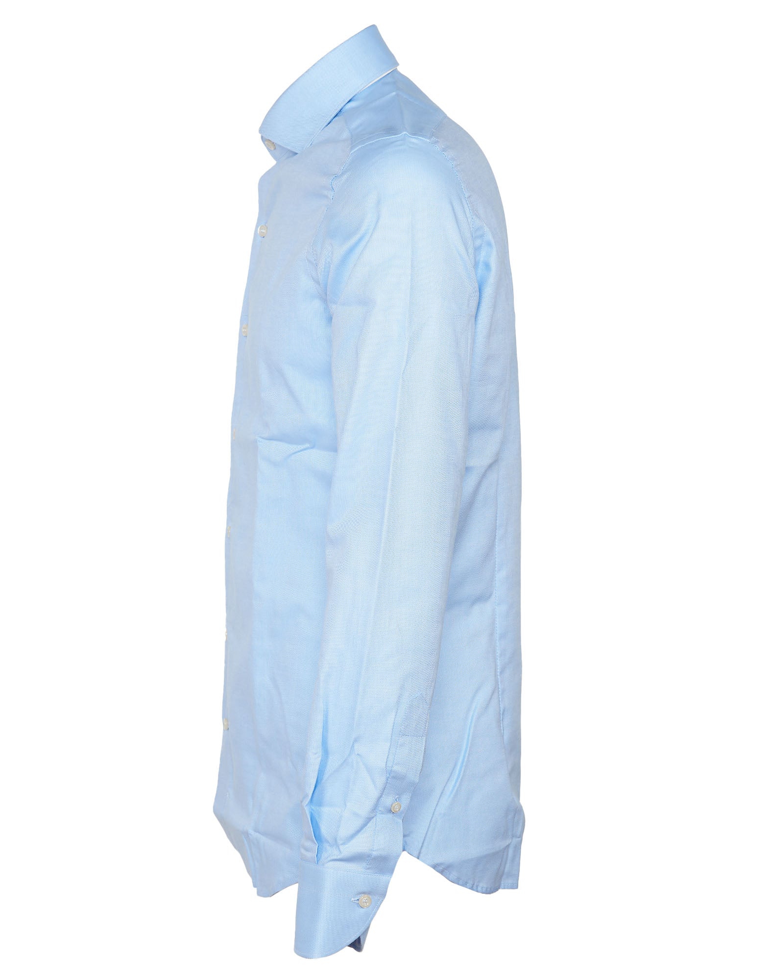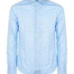 L'essenza della camicia secondo Alea. Camicia in cotone azzurro. Colletto francese e chiusura frontale a bottoni. Manica lunga con polsino rotondo. Colore: azzurro.